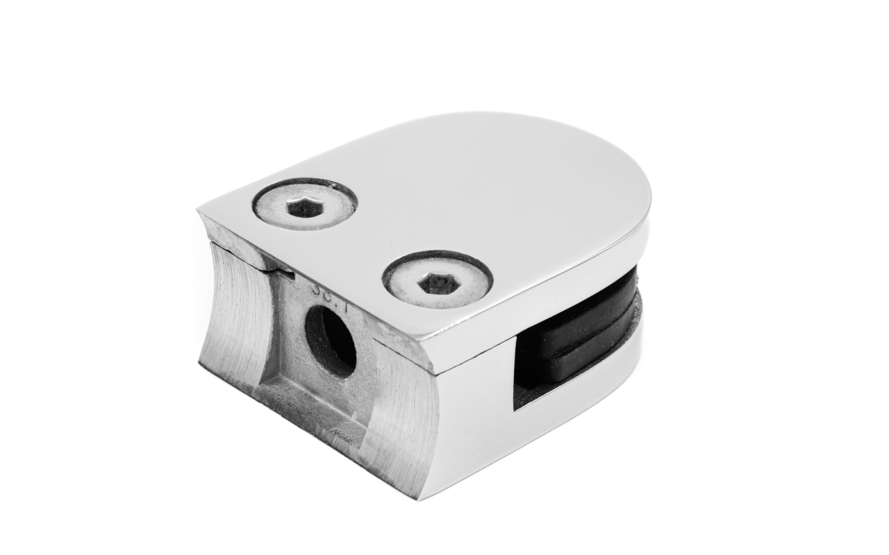 Стеклодержатель литой под стекло 8 мм (4+4 мм), под стойку Ø38.1 мм, (40х22х49), полированный. Марка стали - AISI 316