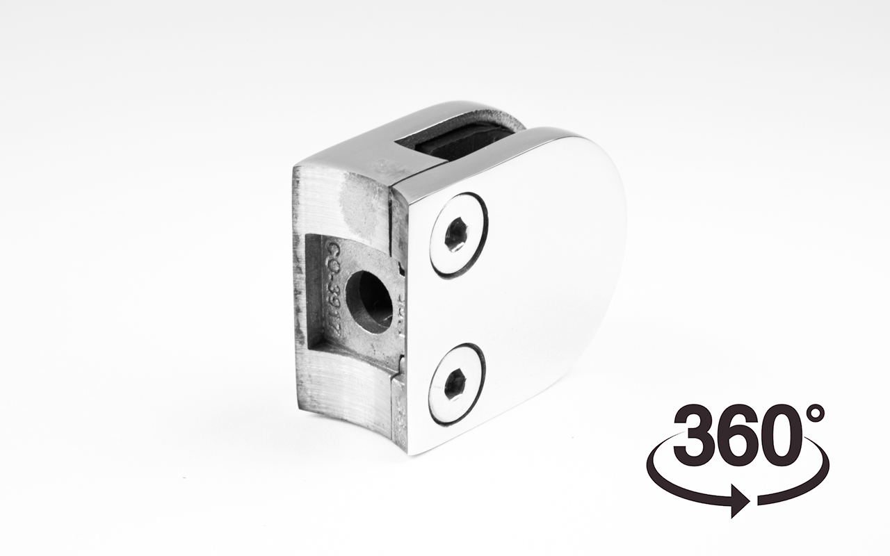 Стеклодержатель литой под стекло 8 мм (4+4 мм), под стойку Ø38.1 мм, (40х22х49), полированный AISI 316 k001-5