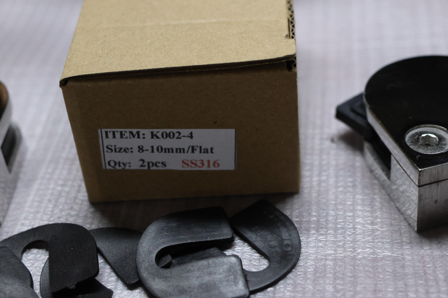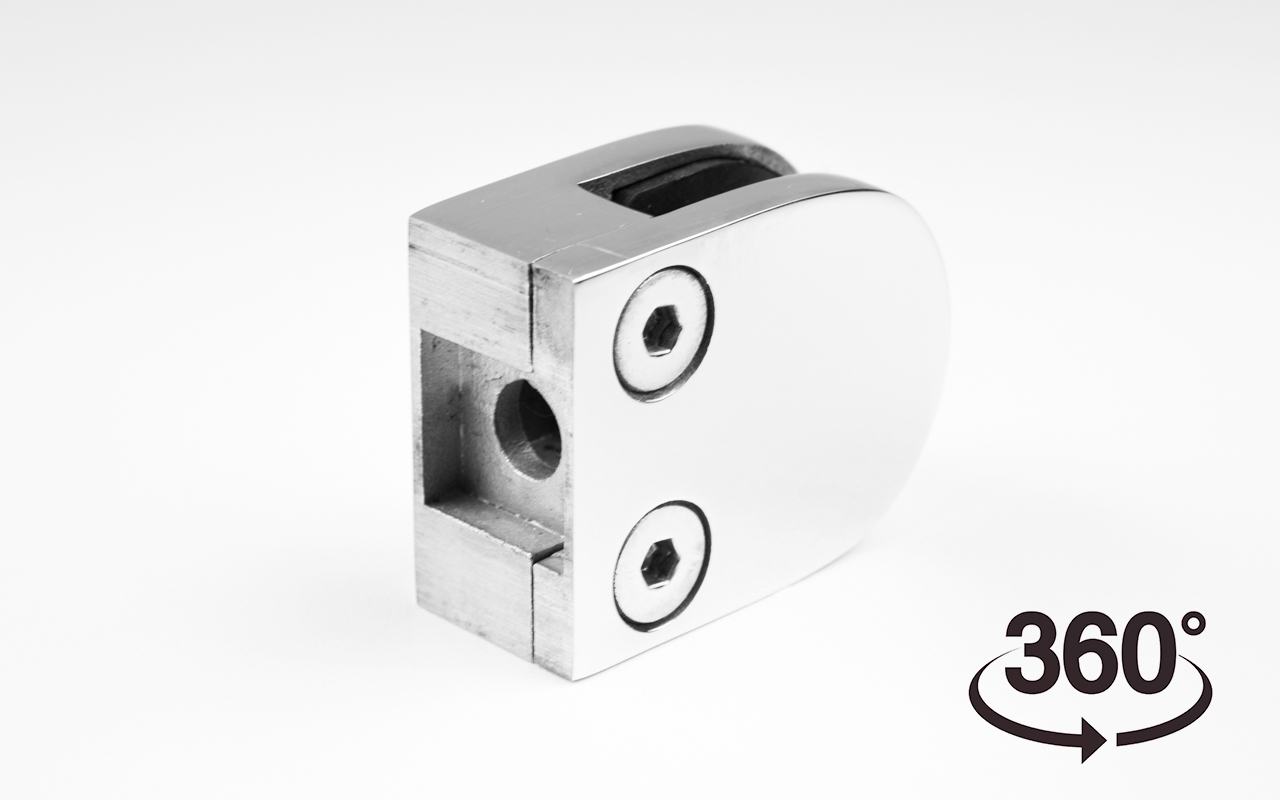Данная модель выполнена методом литья, поэтому обеспечена существенным запасом прочности. По умолчанию, стеклодержатель подготовлен для зажима стекла толщиной 8 мм, но если нужно использовать на ограждении стекло 10 мм, нужно заменить штатные уплотнители на модель k005.