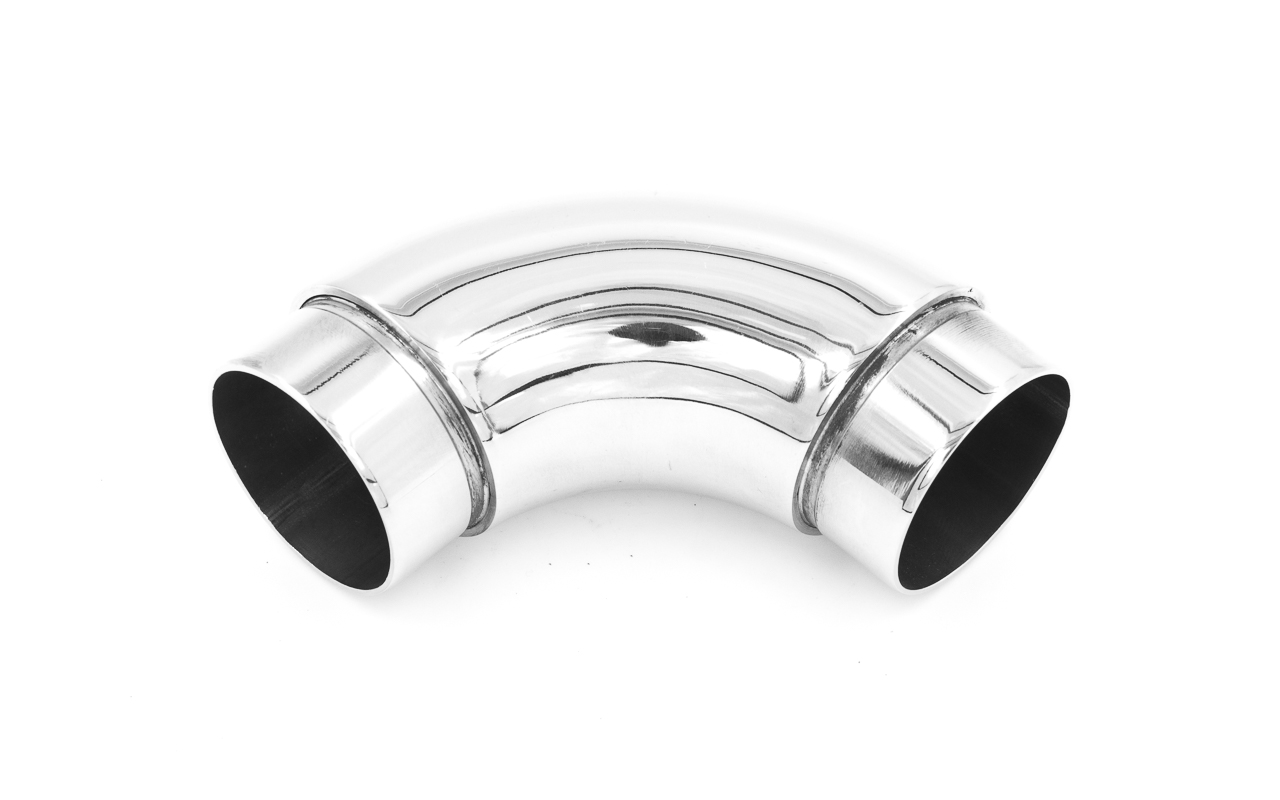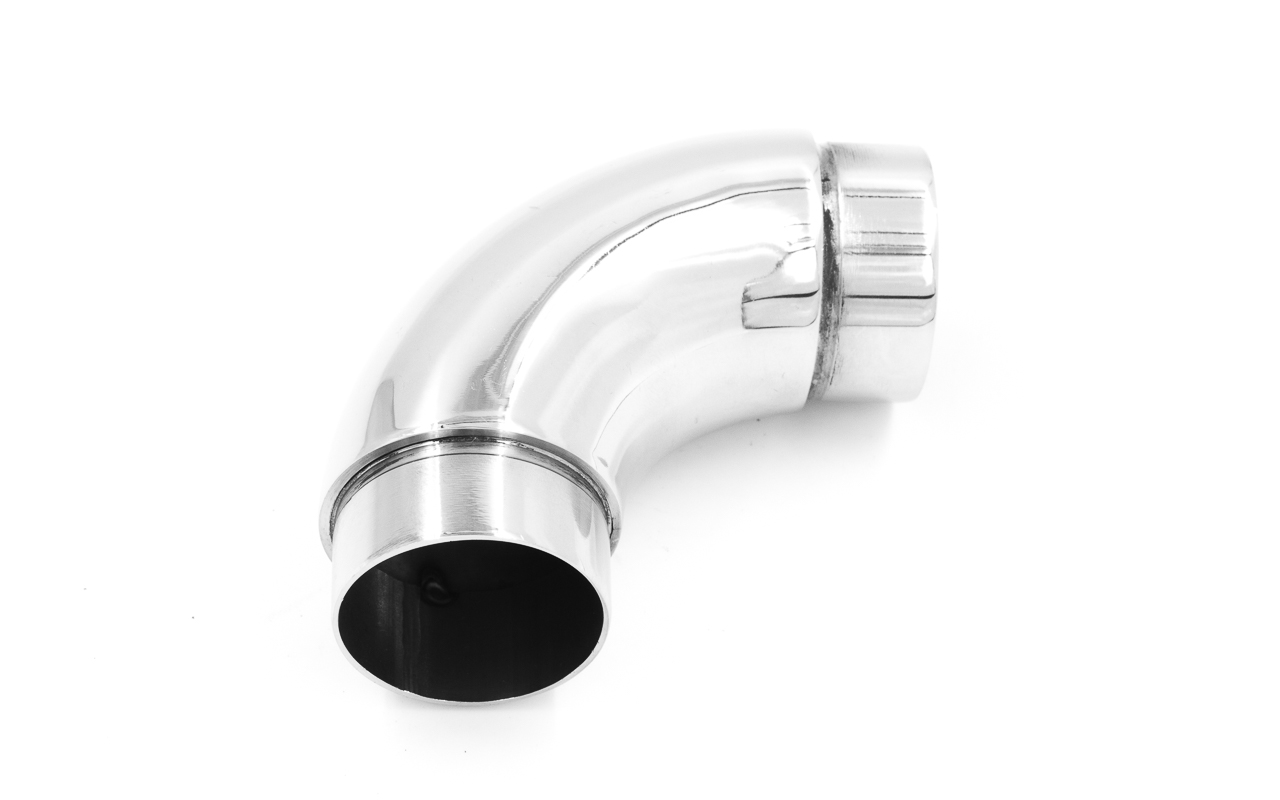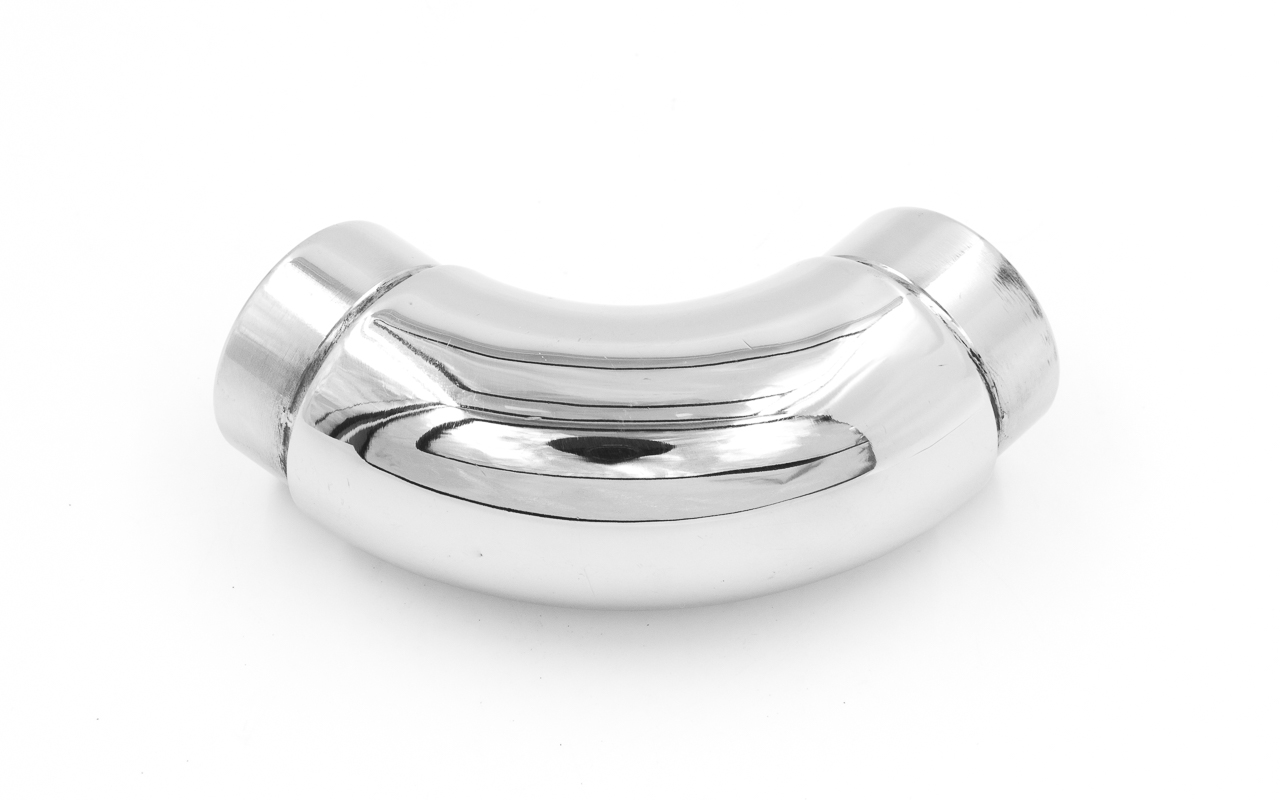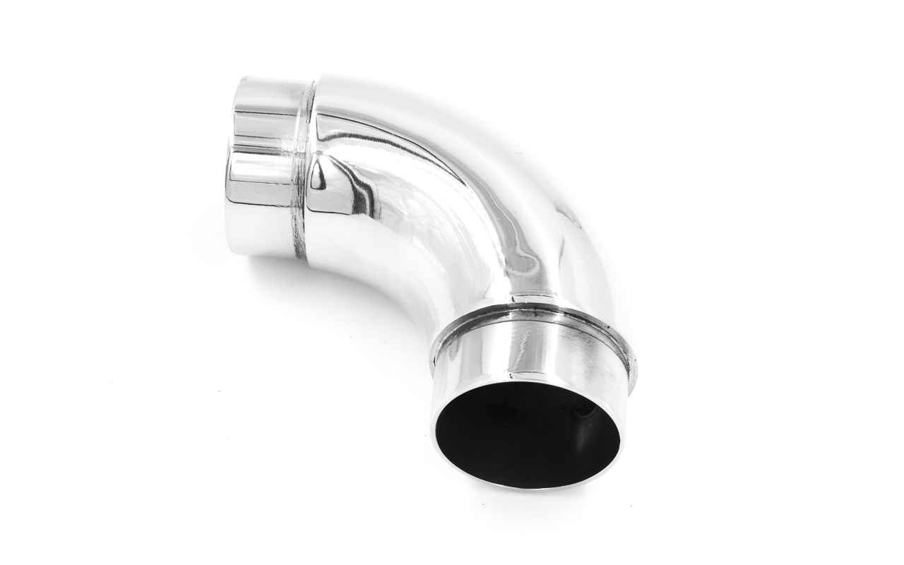Отвод поручня под Ø38.1х110х1.5 мм, 90°, литой, полированный 600 Grit, с двумя установочными кольцами, (AISI 316) k059-4
