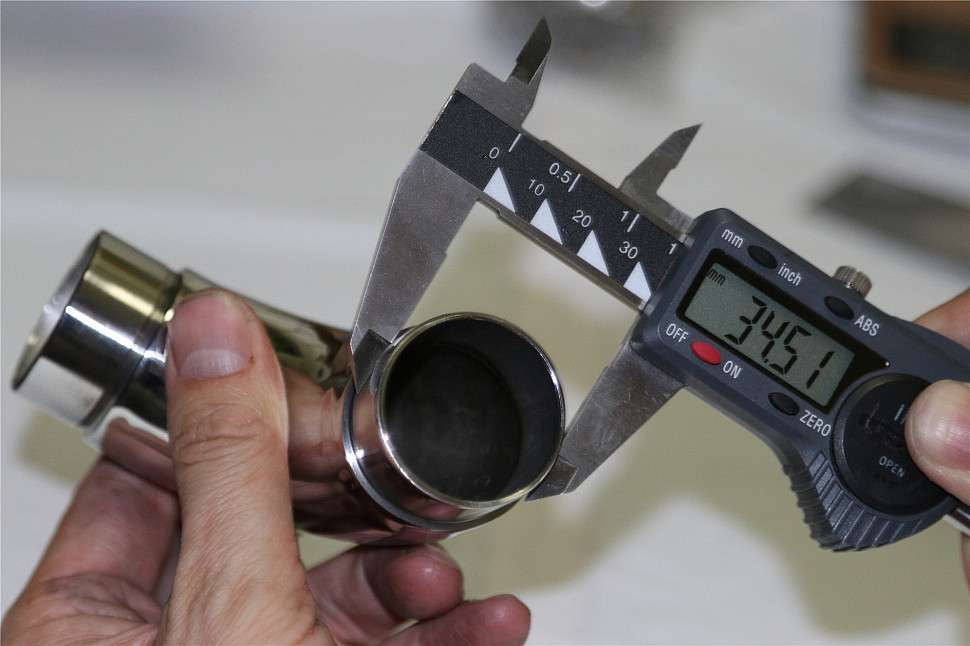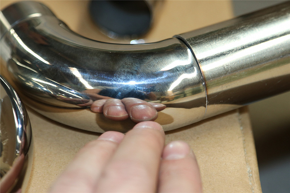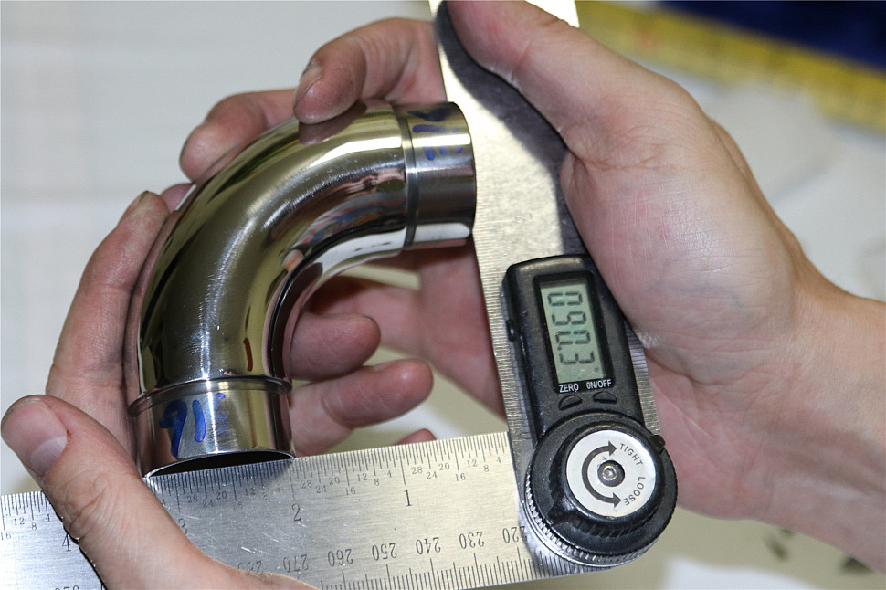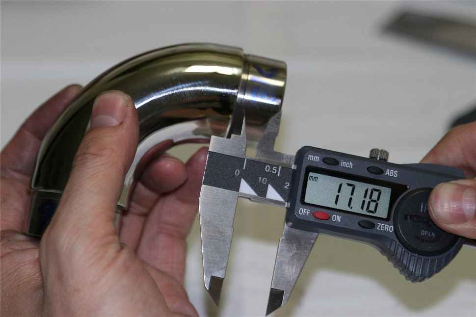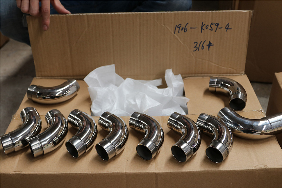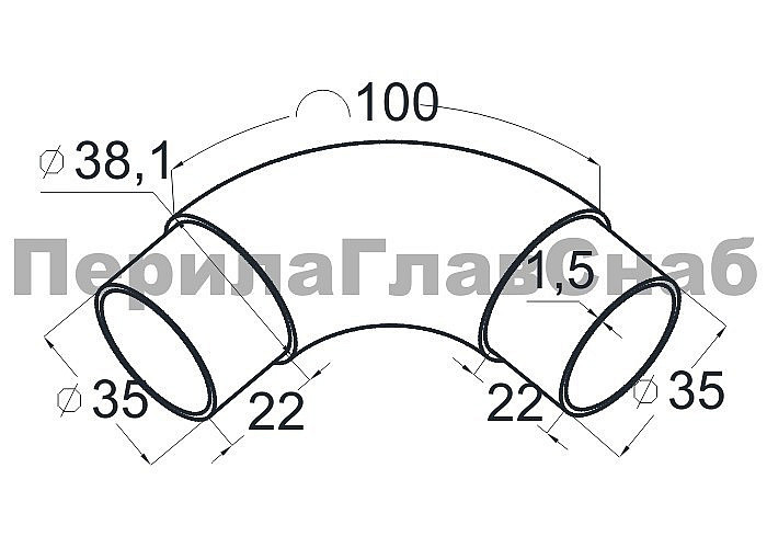 Отвод поручня под Ø38.1х110х1.5 мм, 90°, литой, полированный 600 Grit, с двумя установочными кольцами, (AISI 316) k059-4
