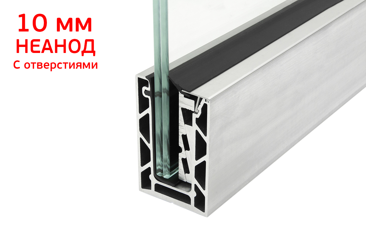 В комплект неанодированного профиля под стекло 10мм и 5+5мм входит: