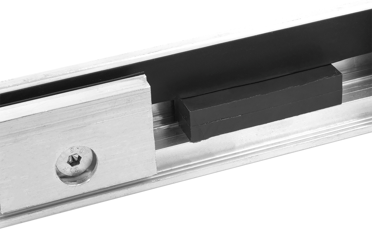 Основной профиль - алюминиевые хлысты. Они оборудованы специальными отверстиями для крепления зажимов. Для удобства, надежности и защиты стекла от порчи этот элемент дополнен резиновым уплотнителем.