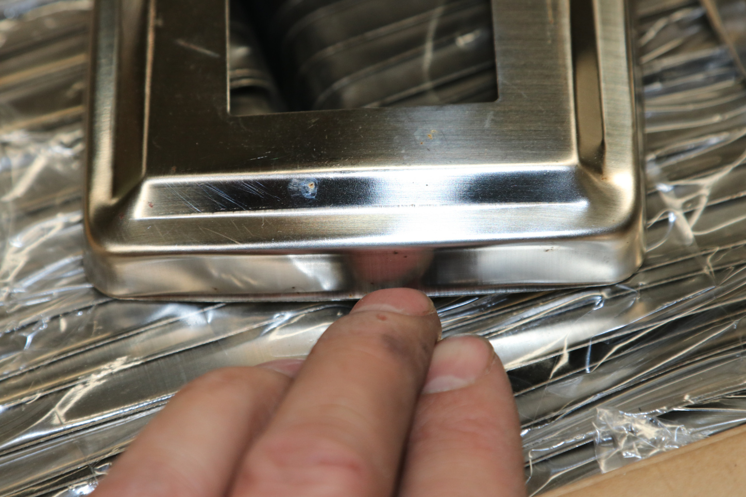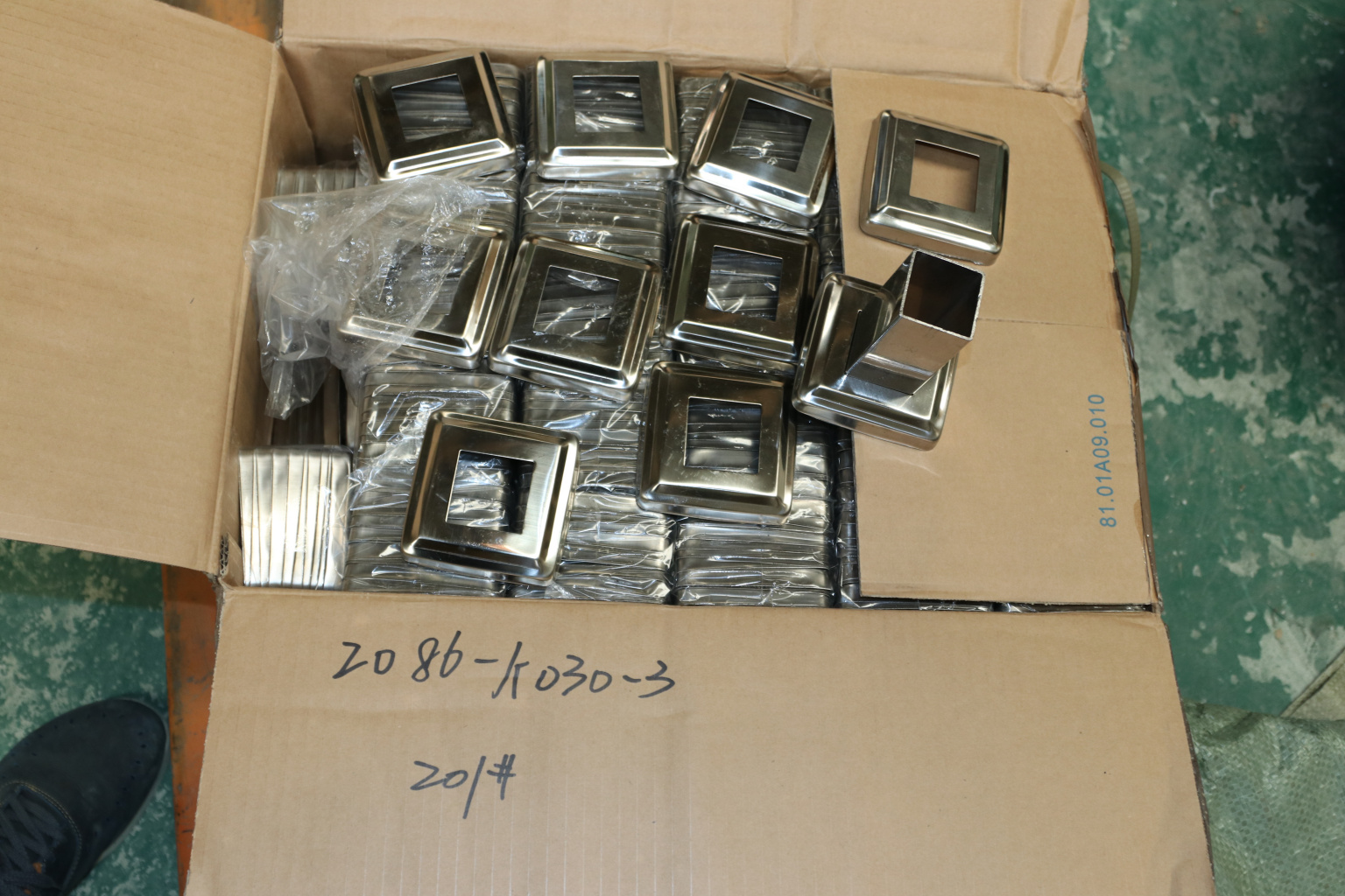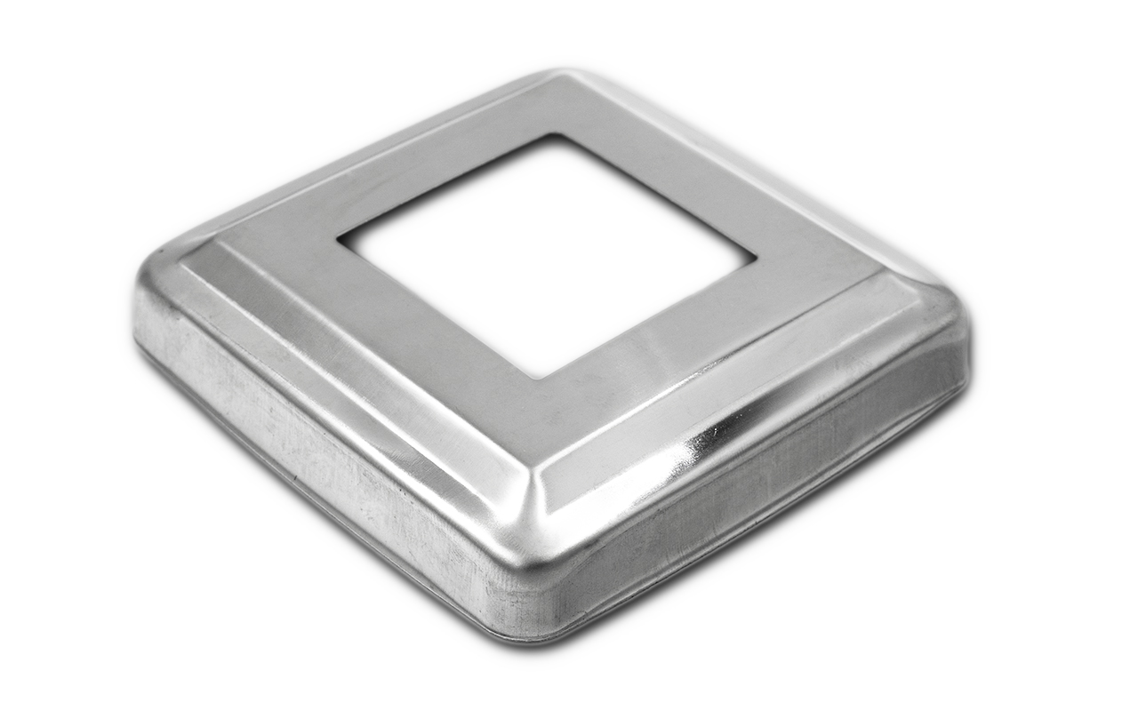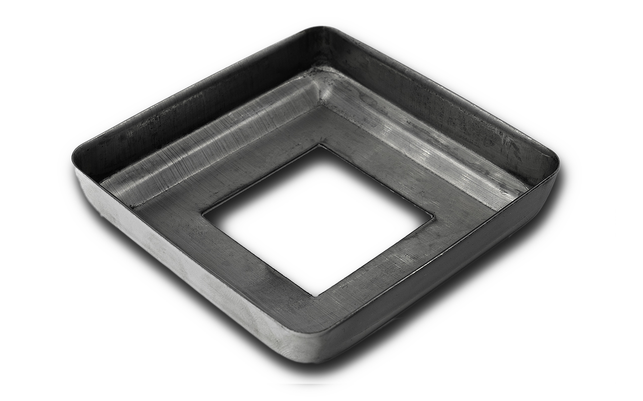 Низ стойки 87х87 мм, S=0.8, под 40х40 мм. Деталь полированная, штампованная.
