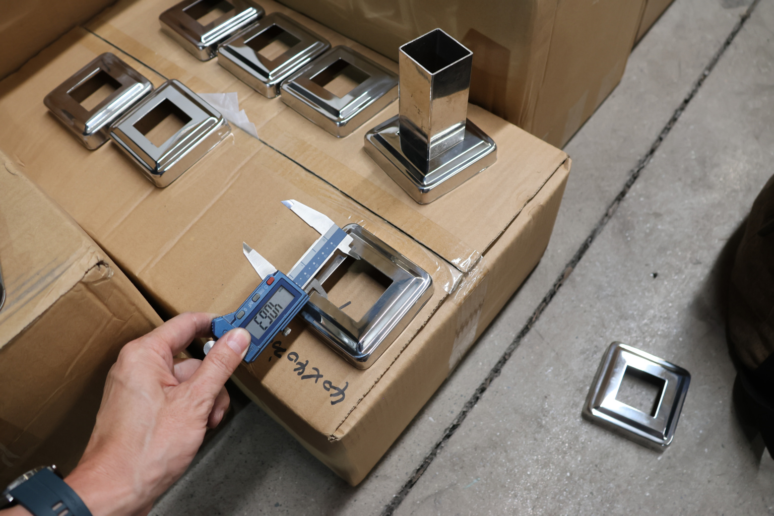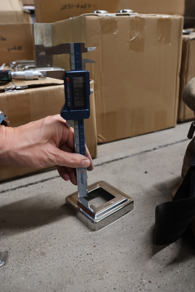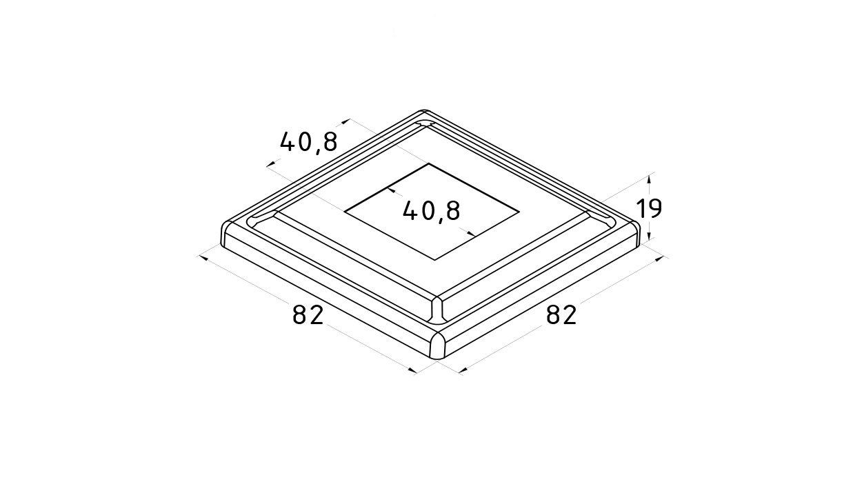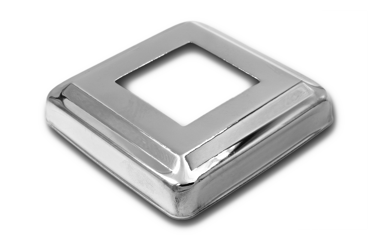 Низ стойки фигурный под трубу 40х40 мм, 82х82х0.8, высота 19 мм, полированный (AISI 304) k030