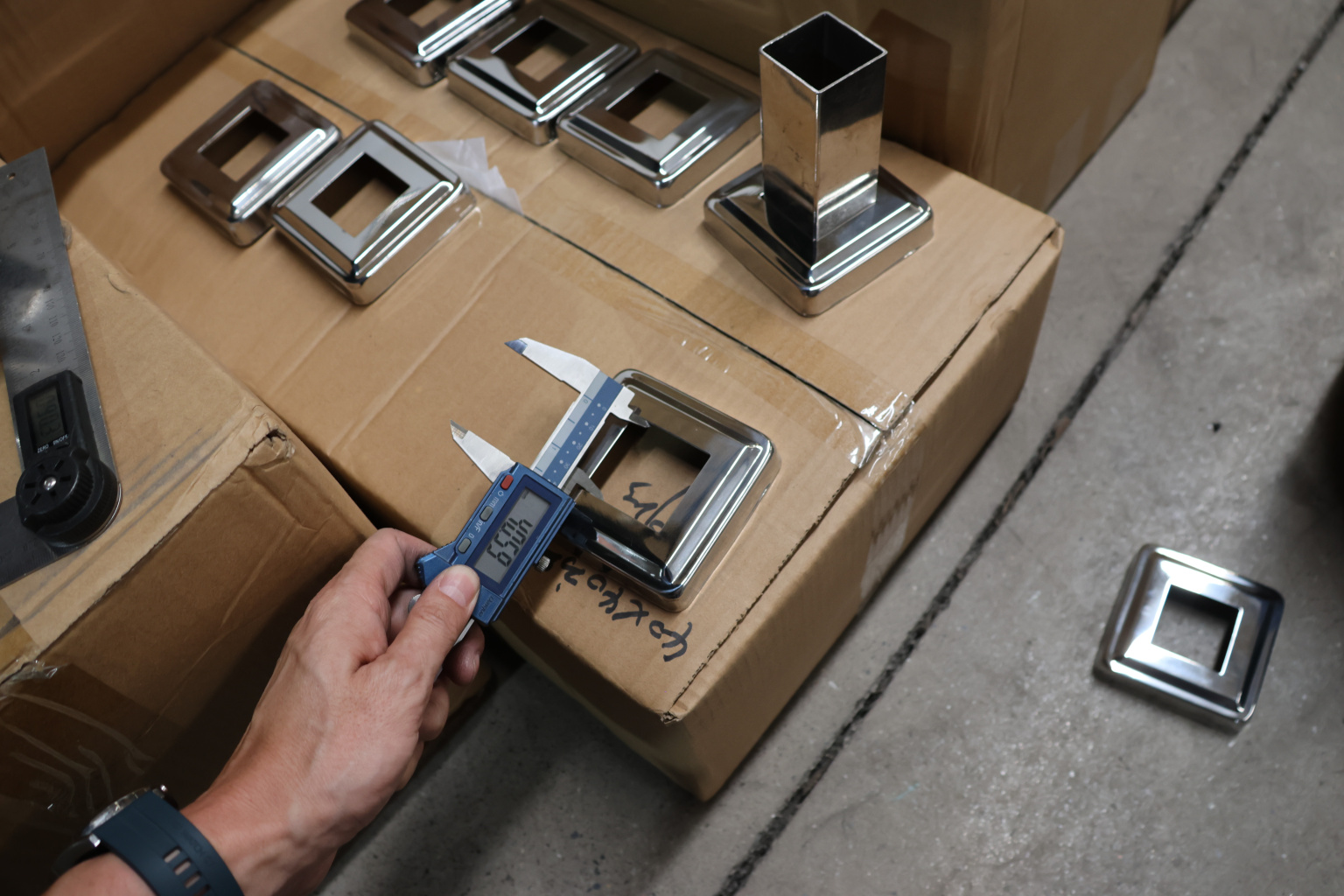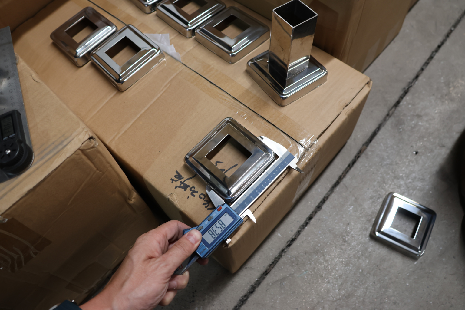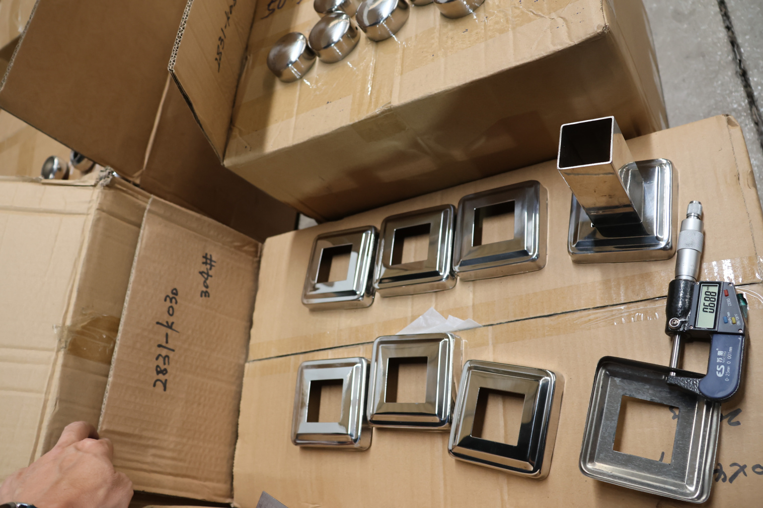 Низ стойки фигурный под трубу 40х40 мм, 82х82х0.8, высота 19 мм, полированный (AISI 304) k030