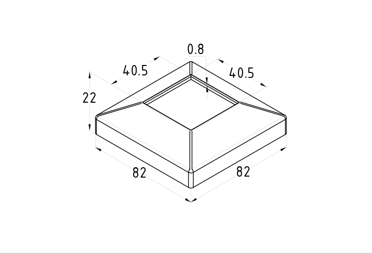 Низ стойки под трубу 40х40 мм, 82х82х0.8, высота 22 мм, полированный (AISI 304) k076