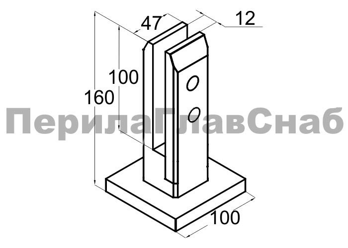 Стеклодержатель литой напольный, плоский 50х50х160 мм, полированный, под золото (AISI 304) Фk275-88