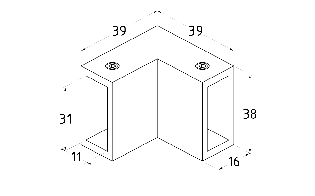 Соединитель труба-труба для трека 30х10 мм, 90°, нержавеющая сталь AISI 304, черная t460 BL