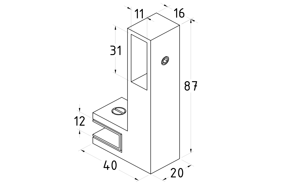 Коннектор труба-стекло для трека 30х10 мм, нержавеющая сталь AISI 304, черная t466 BL