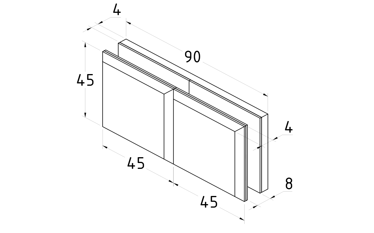 Коннектор для душевой кабины стекло-стекло 180°, 45х45, черный, вырез 71 t734 BZn
