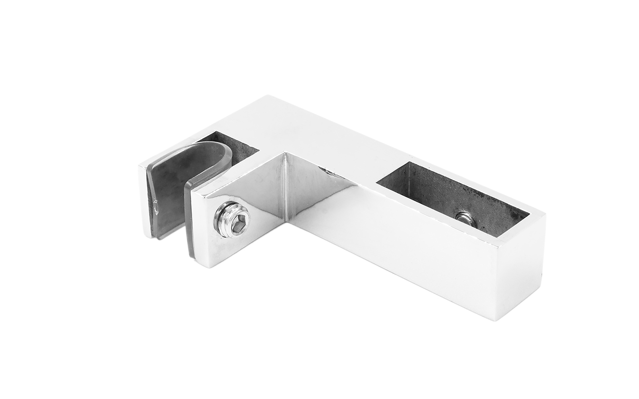 Коннектор предназначен для крепления профильной трубы 30х10 мм к стеклу в горизонтальной ориентации параллельно стеклу, при монтаже штанг верхней обвязки душевых кабин.