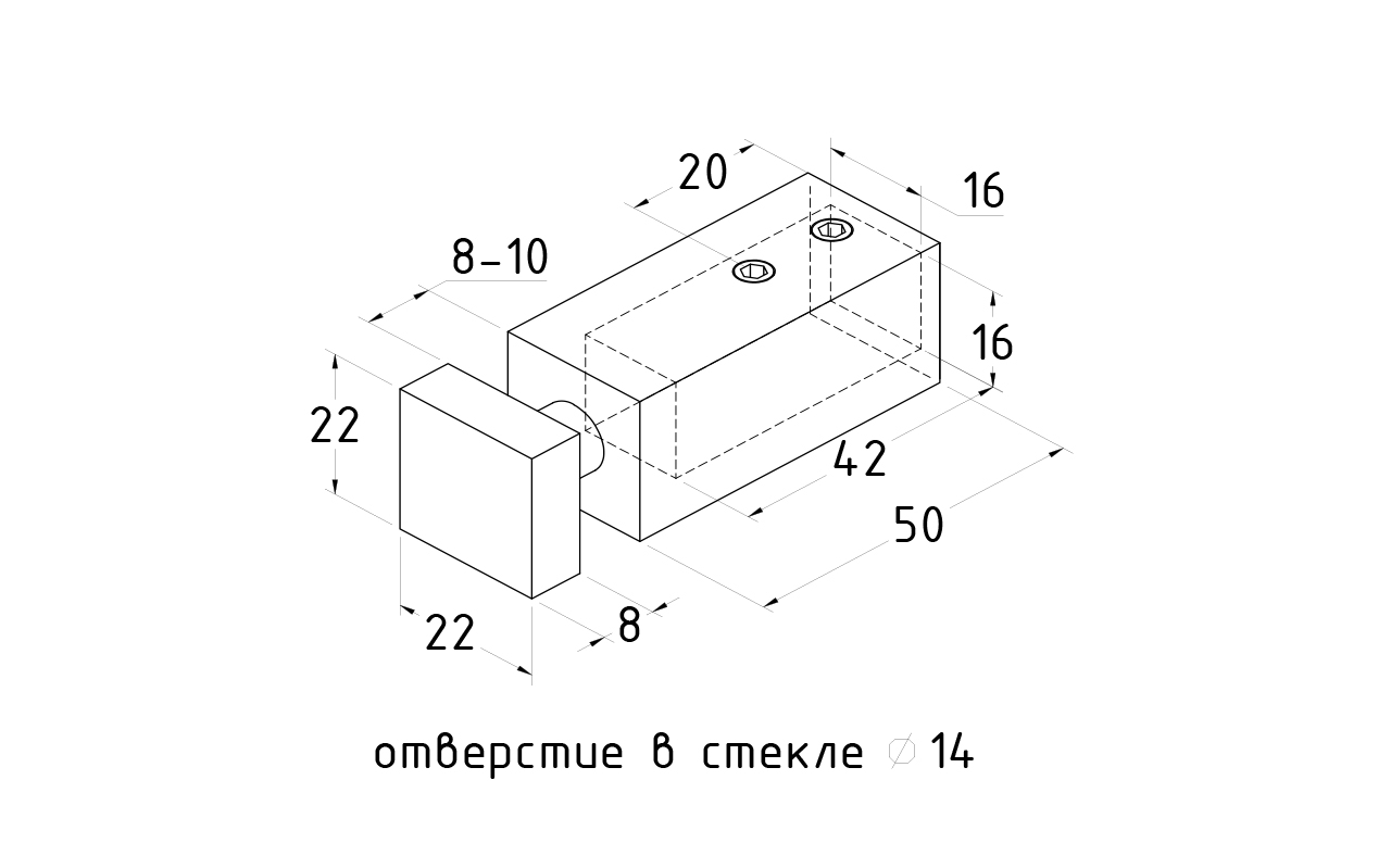Соединитель труба-стекло сквозной, для 15х15, полированный t801 PSS