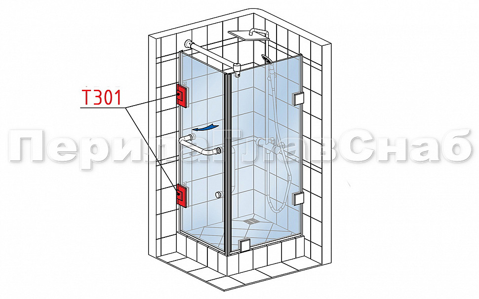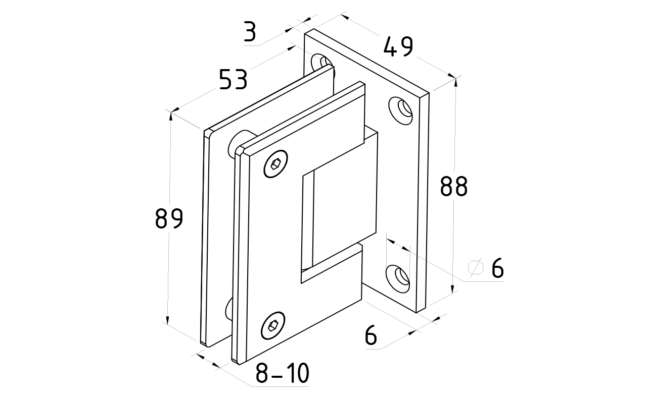 Петля для душевой кабины стена-стекло 90° 90х55 мм AISI 304, шлифованная t301 SSS