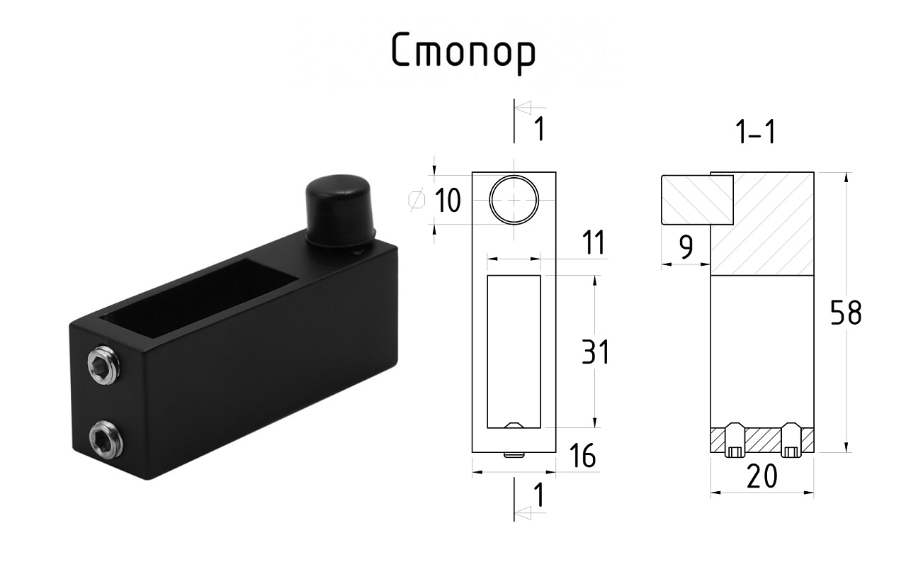 Крепление трека 30х10 к стеклу, AISI 304 черный t449 BL купить в Москве