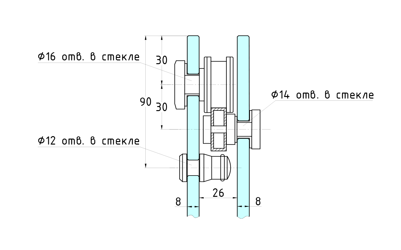 На дверь устанавливаем верхние ролики из комплекта в подготовленные вырезы в стекле. Сверху накидываем дверь и затягиваем ролики.
