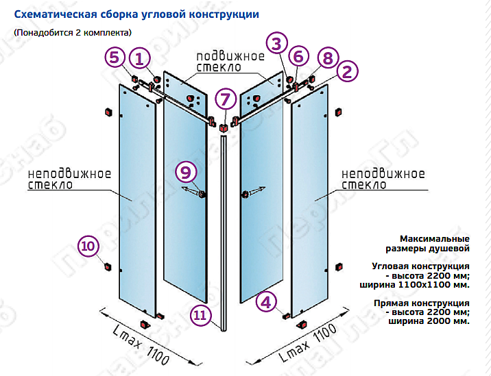 Устанавливаем профиля t756 BL на стену и пол где будут неподвижны стекла. Фиксируем стекла в профиля.