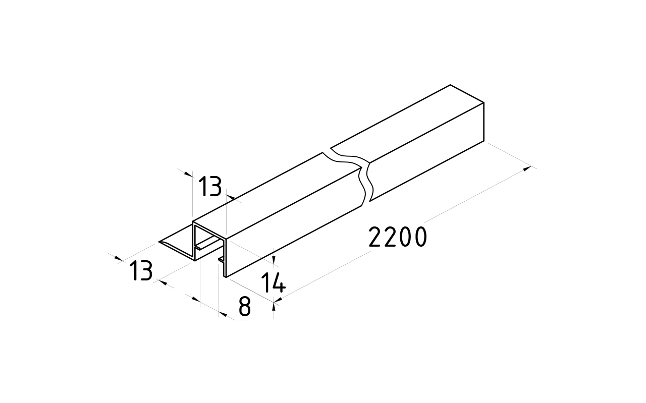 Уплотнитель для стекла в душевую кабину 8 мм, стекло-стекло 2200 мм t202