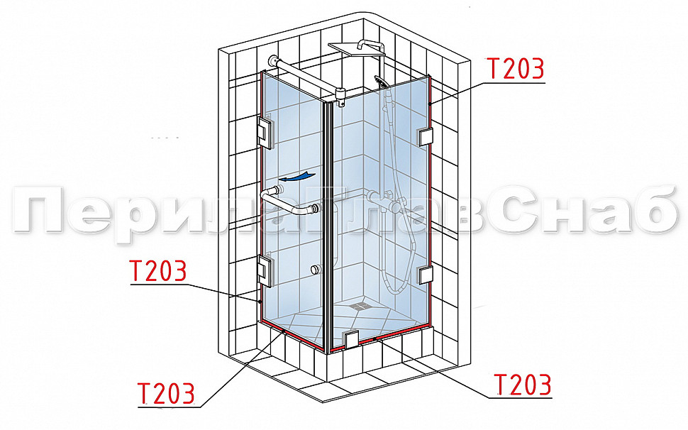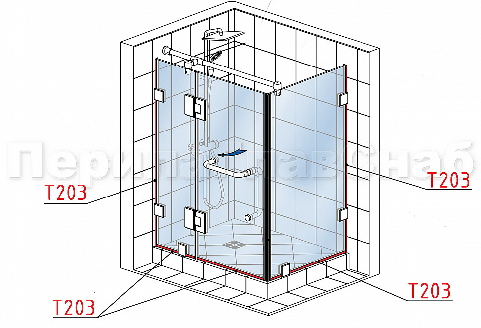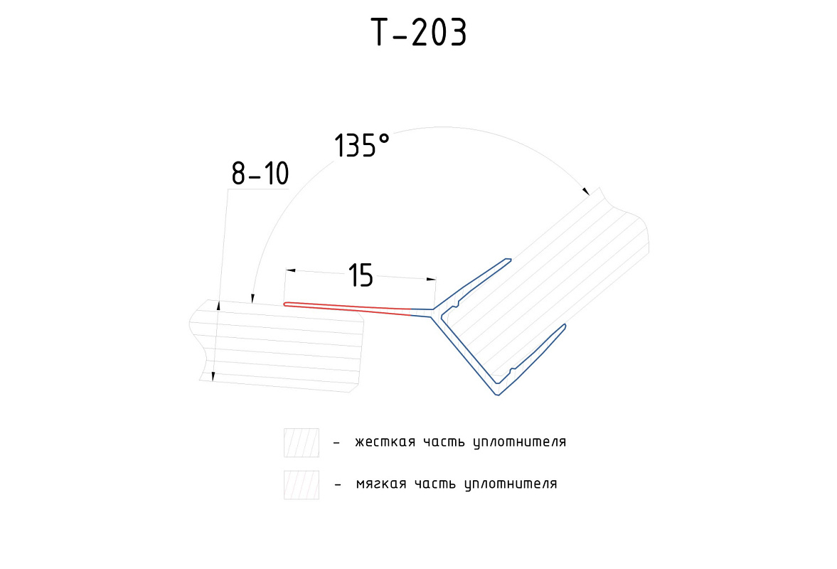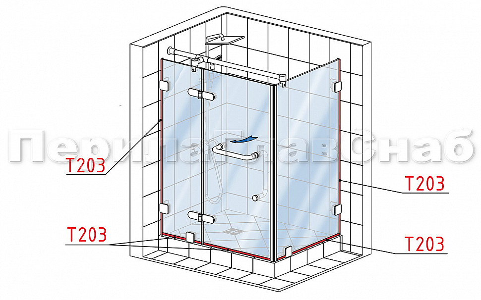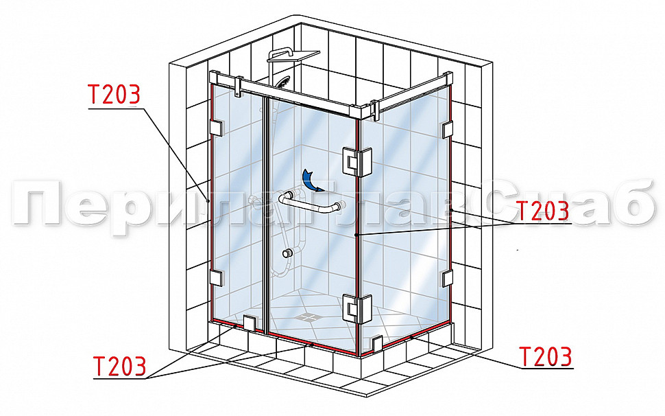 Уплотнитель для стекла в душевую кабину 8 мм, стекло-стекло 2200 мм t203