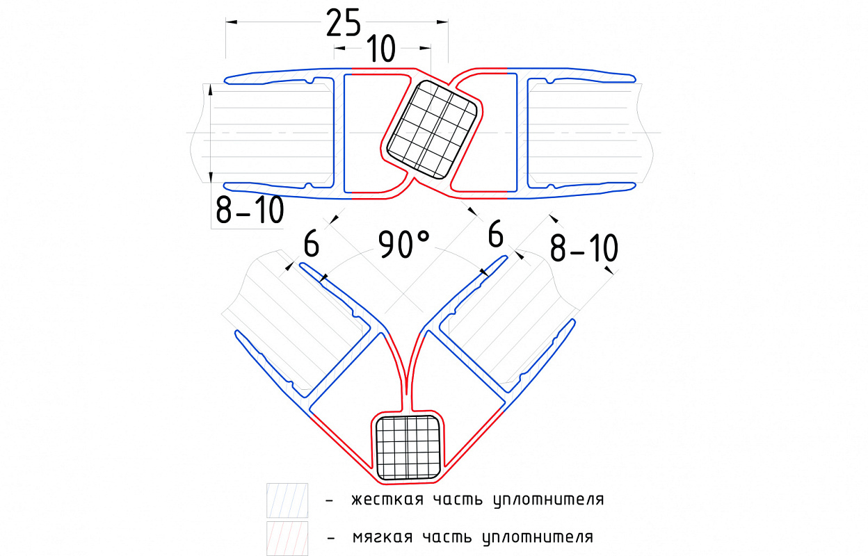 Комплект уплотнителей для стекла 8мм (2 шт.), полупрозрачный черный, стекло-стекло, с магнитом 90°/180°, 2,2 м t210-2 BL