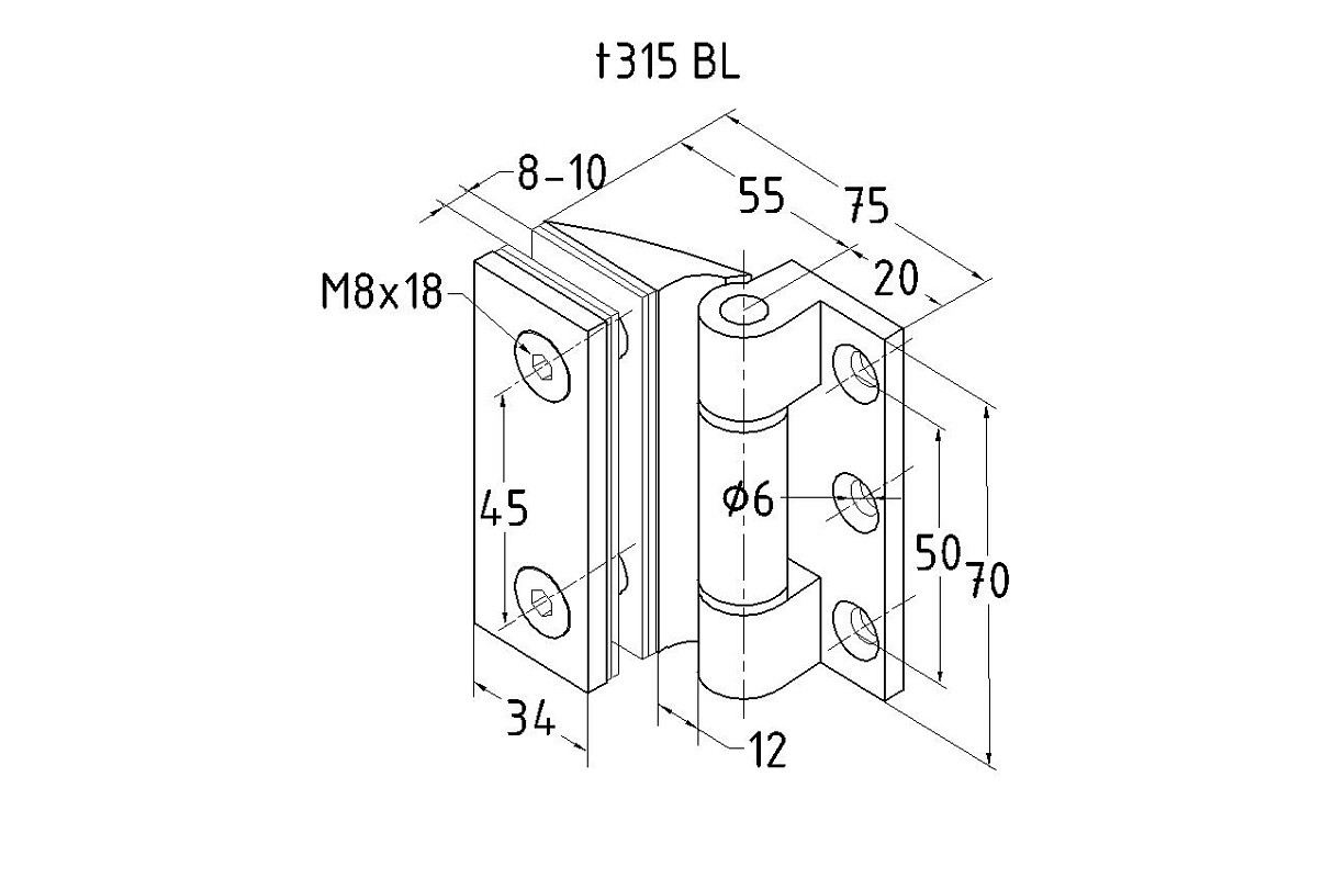 Петля для душевой стена-стекло 90°, односторонняя, без реза, нержавеющая сталь AISI 304, черная t315 BL