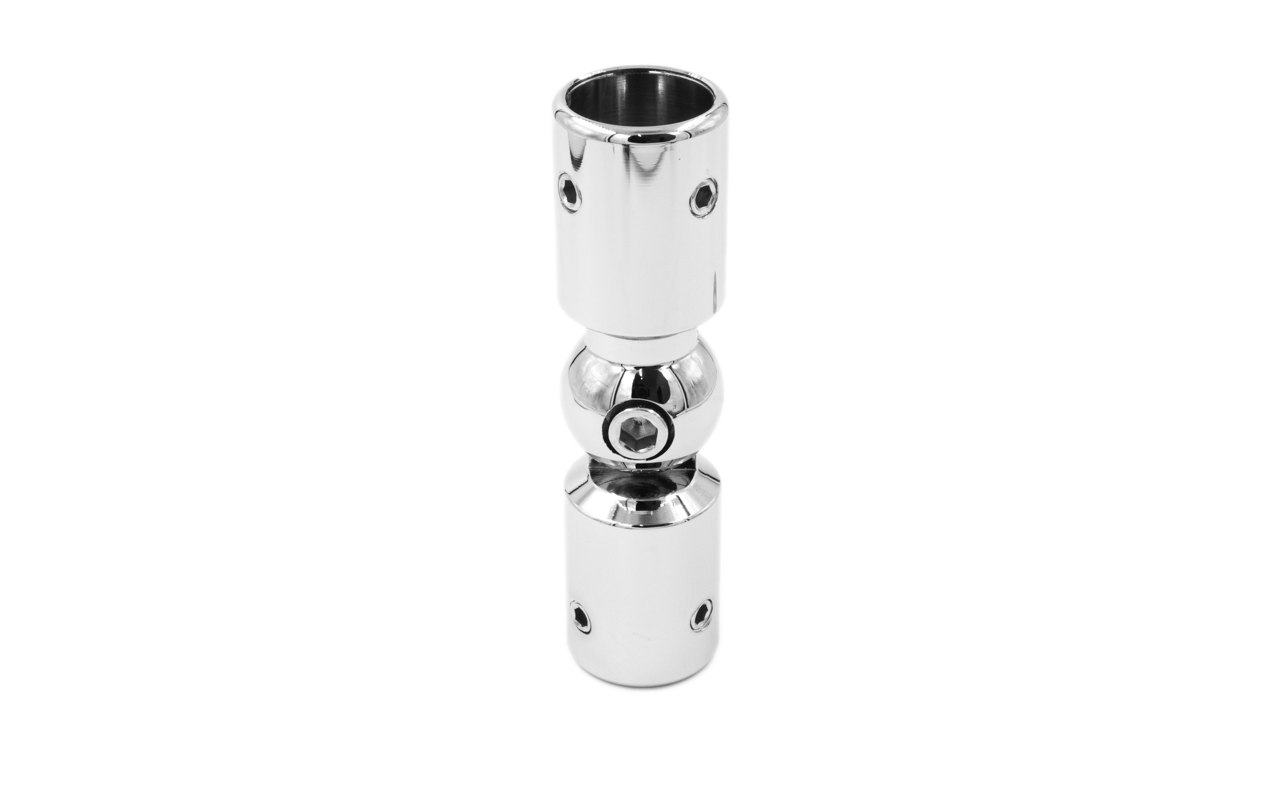 Cоединитель шарнирный, регулируется под произвольным углом. Предназначен для соединений штанги т900-03 т900-06. Материал - цинк-хром, поверхность - полированная