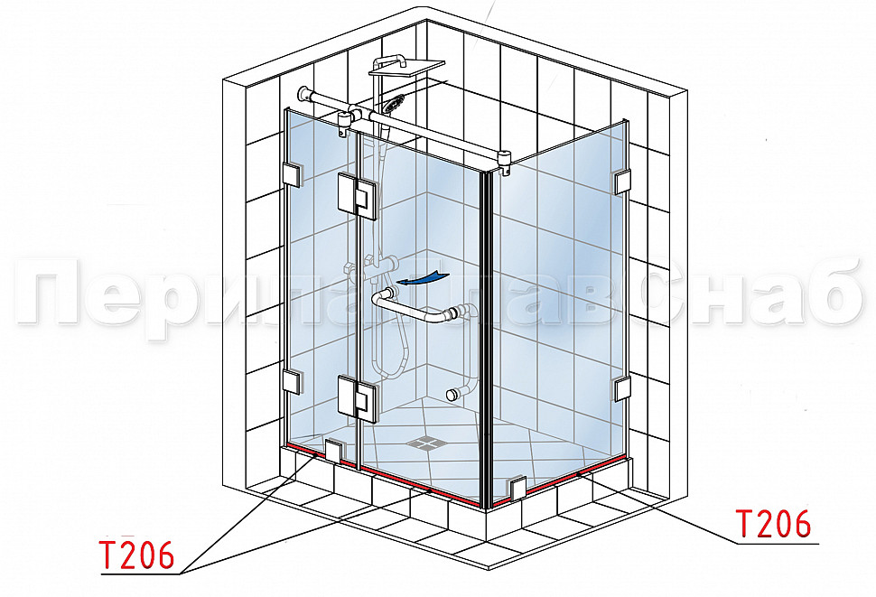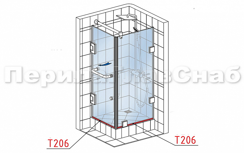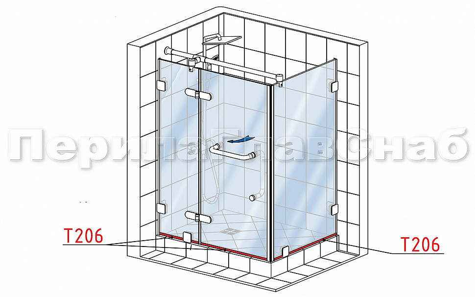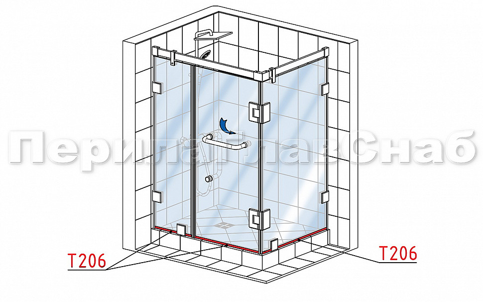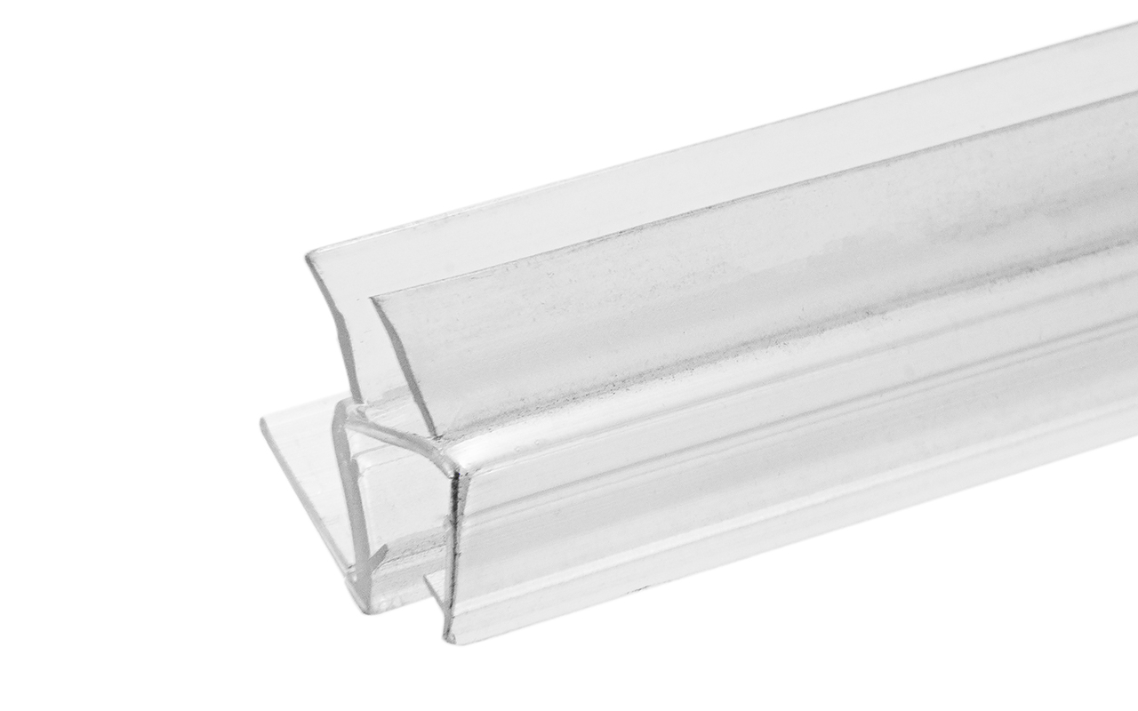 t206 Профиль уплотнительный стена-стекло, прозрачный ПВХ 1.5 мм, для стекла 8 мм. Длина 2200 мм.