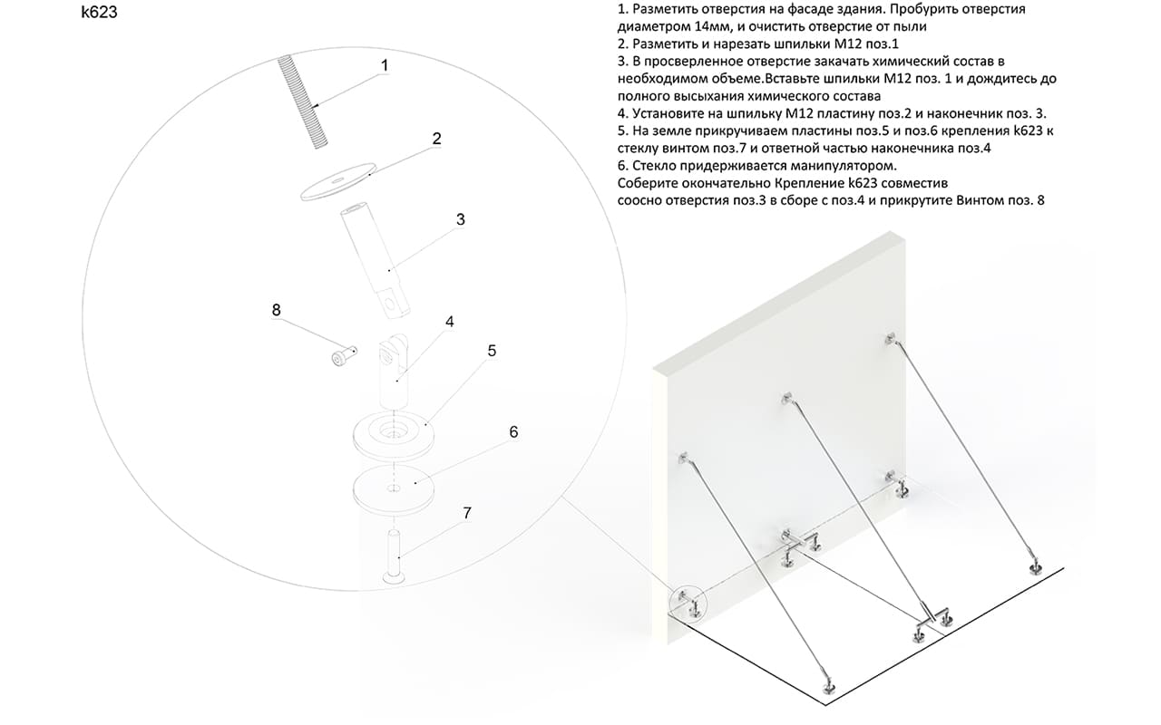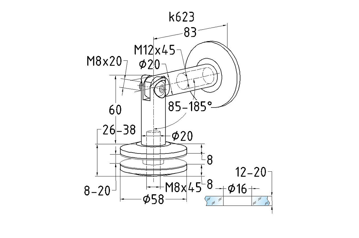 Крепление стекла к стене, шлифованное, AISI 304 k623