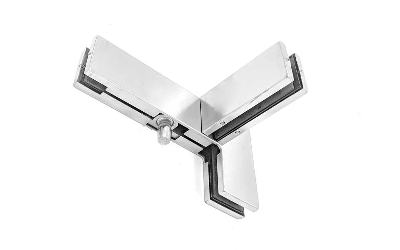 для монтажа стеклянных перегородок. Три стекла можно скрепить в одной точке. Применяется в офисных помещениях, торговых стеллажах, банковских пространствах и т.д. Имеет небольшой вес. Фурнитура защищается стеклянные поверхности от изломов и растрескивания.