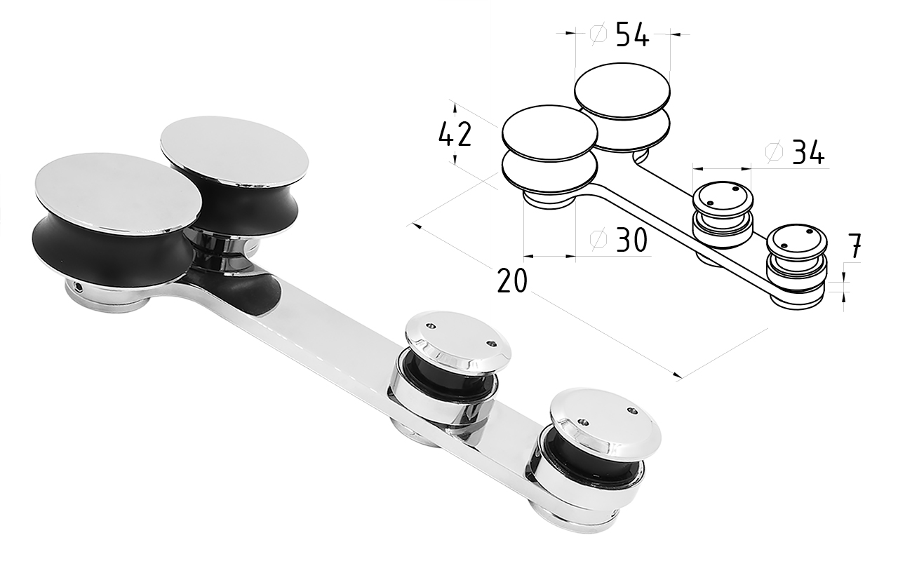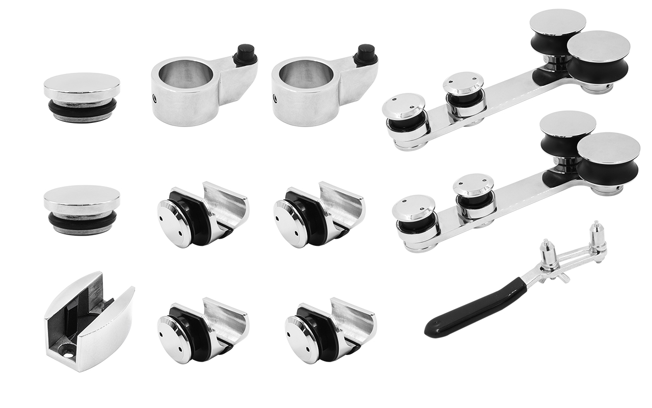 Комплект раздвижной системы для стеклянных дверей, AISI 304, полированный t406
