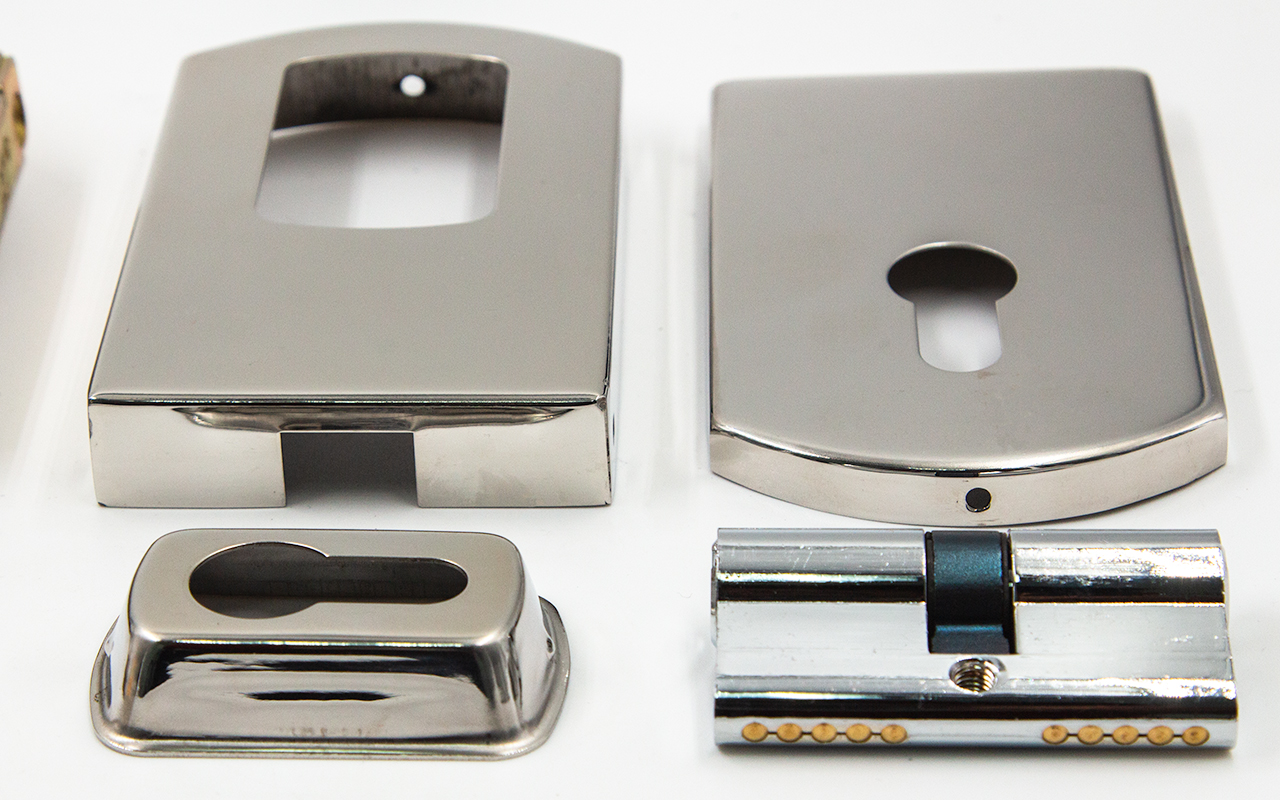 Замок для стеклянной двери вертикальный с ответной частью на стену и пол, полированный, вырез 15 t135 PSS