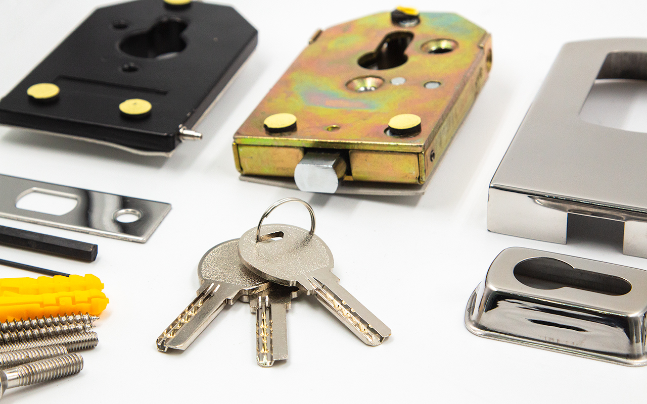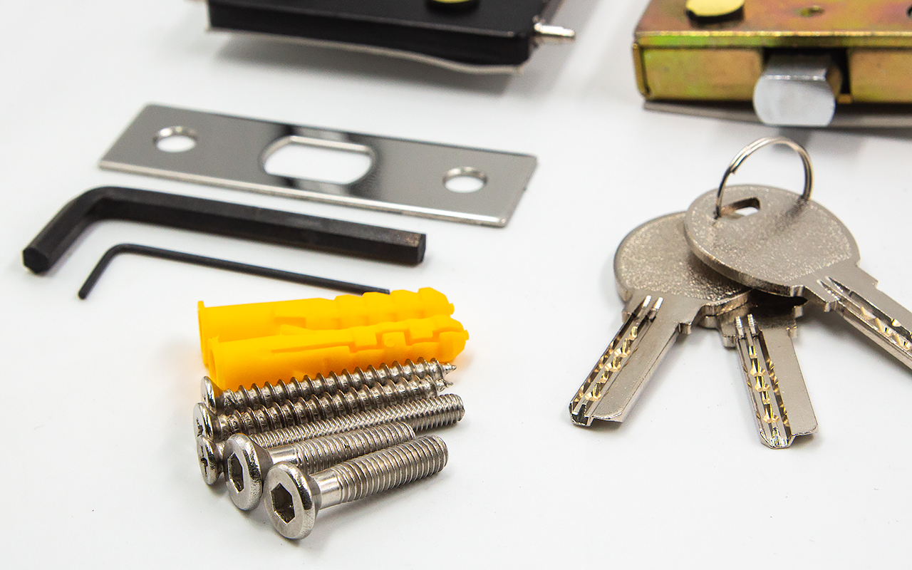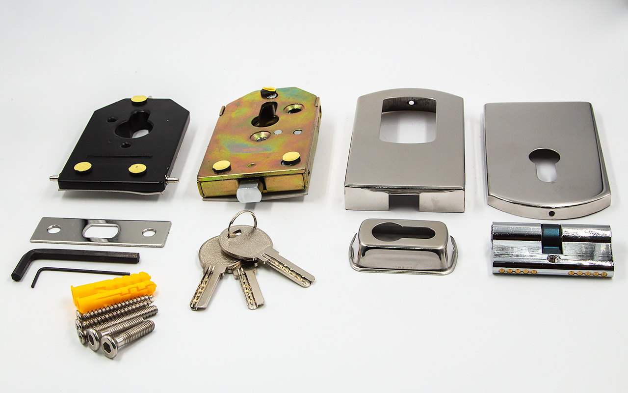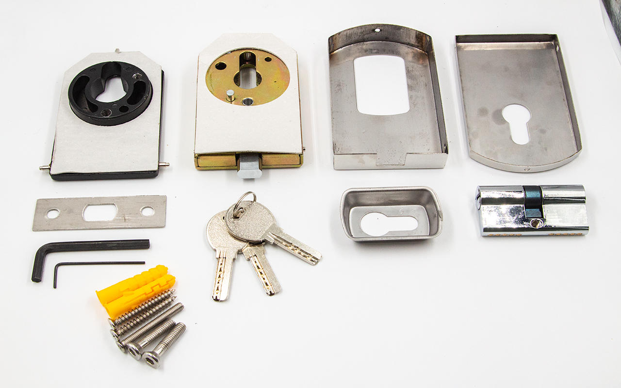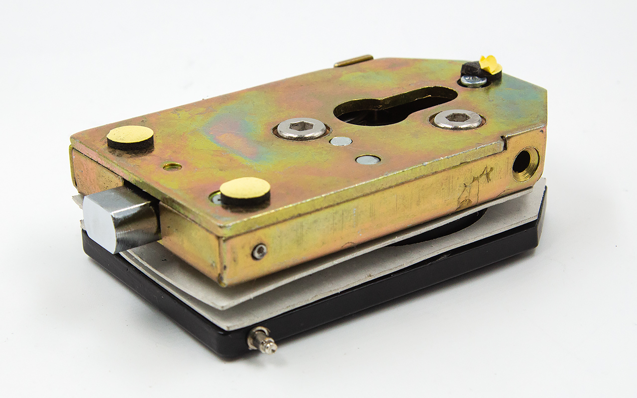 Замок вертикальный с ответной частью на стену или пол, отделка SSS (матовая нержавеющая сталь)