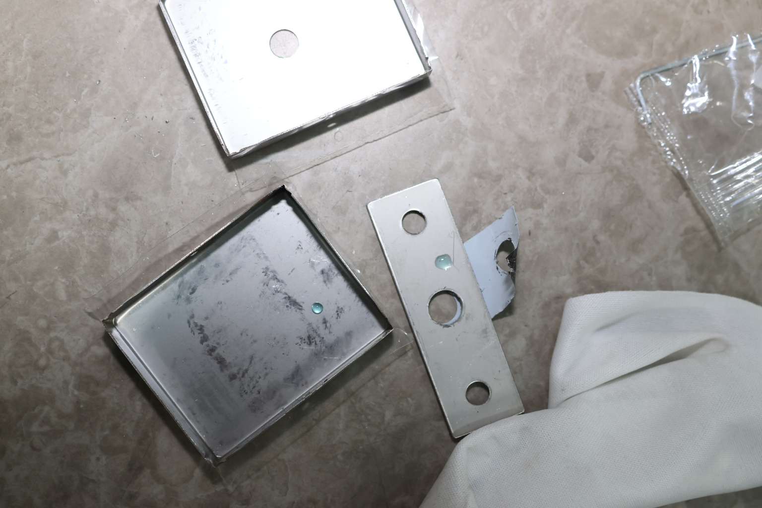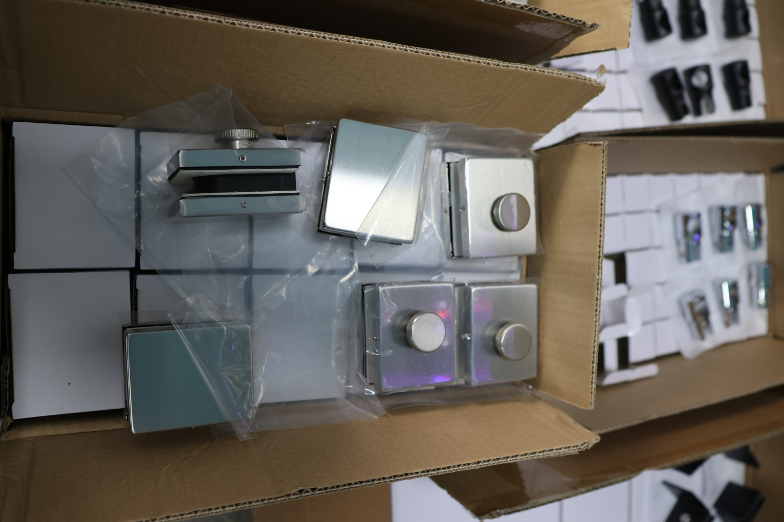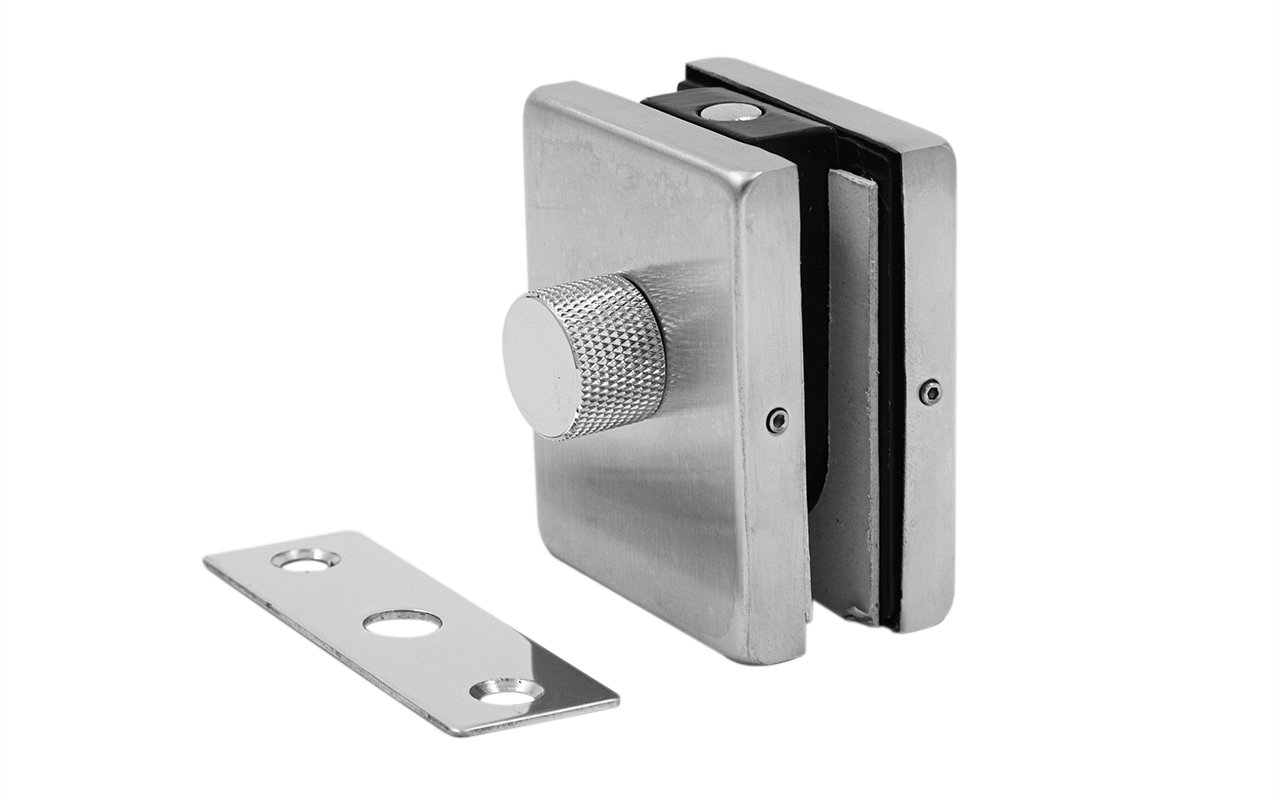 Сбоку нажимаем на крепления крышек и снимаем. Отвинчиваем винты, и фиксируем защелку замка в подготовленный вырез в стекле. Далее закручиваем и фиксируем обратно крышки.