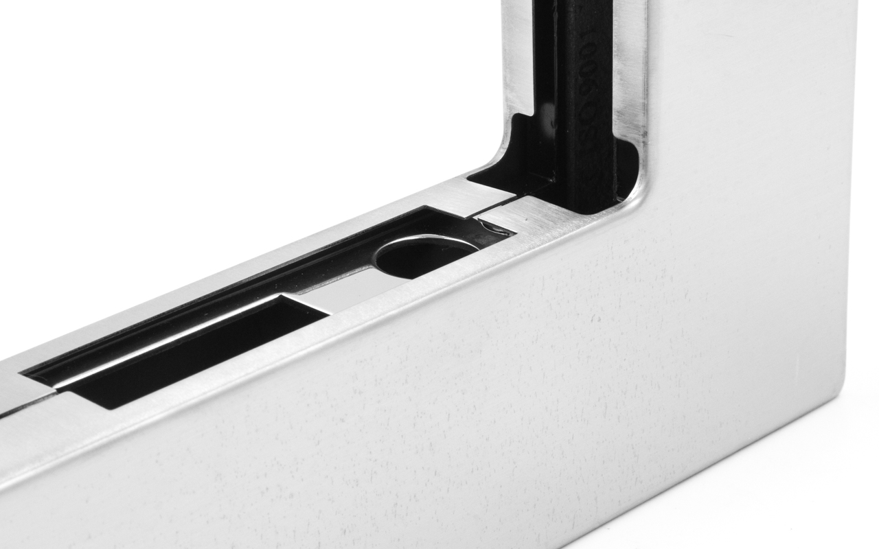 Фитинг угловой соединительный с ответной частью под замок без ограничителя, шлифованный, вырез 02