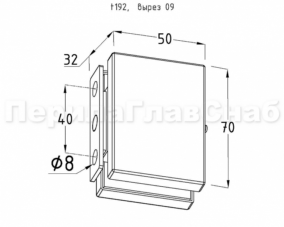Коннектор стена-стекло с монтажной пластиной, полированный, вырез 09 t192 PSS