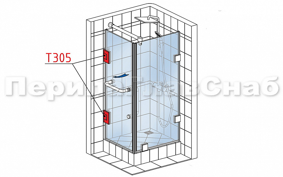 Петля для душевой кабины стена-стекло 90° с односторонним креплением, 90*55, цинк, полированная t305 PZn