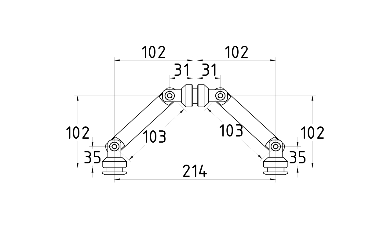 Крепление на три стекла, штанга 103 мм, без зенковки tt204-103A SSS