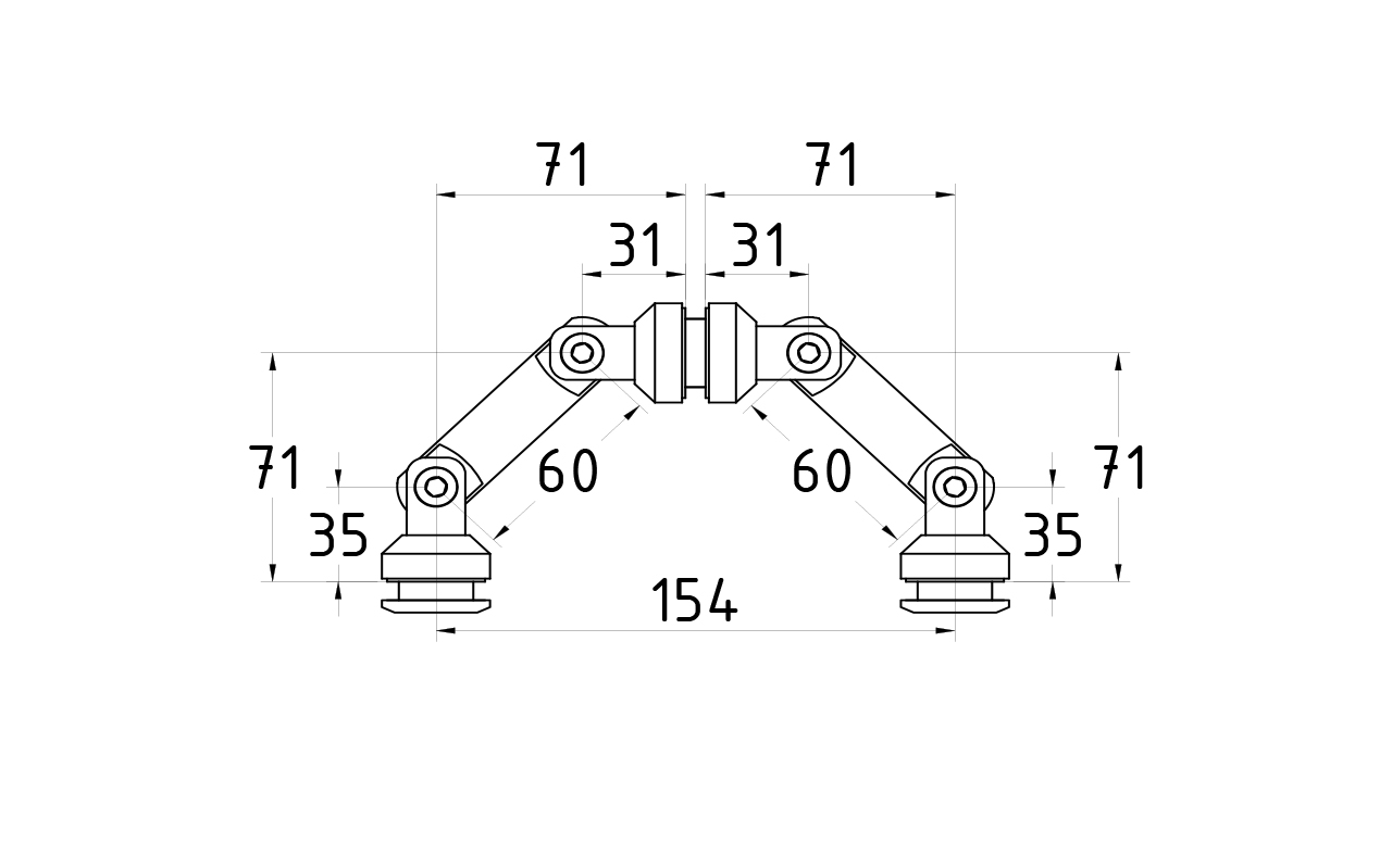Крепление на три стекла, штанга 60 мм, без зенковки tt204-60A SSS