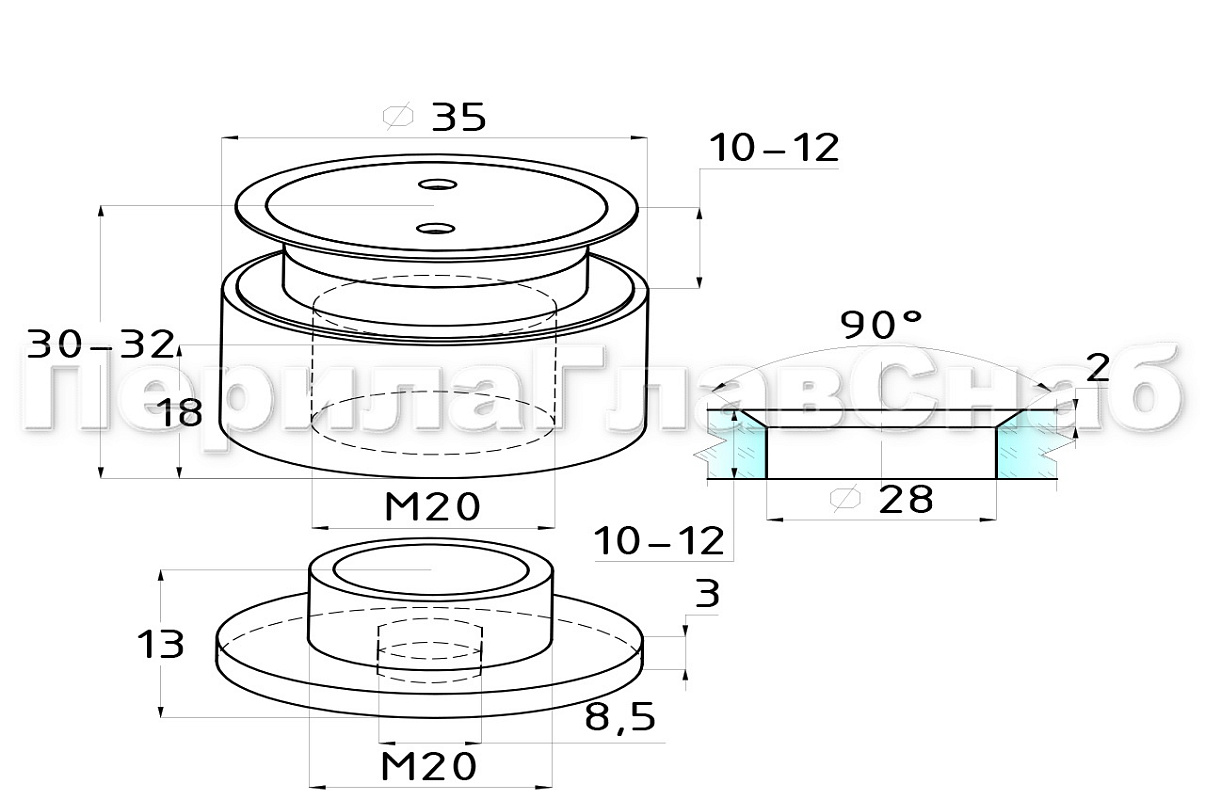 Точечный стеклодержатель 22-26 мм, регулируемый, под зенковку, для стекла 10-12 мм t507 SSS