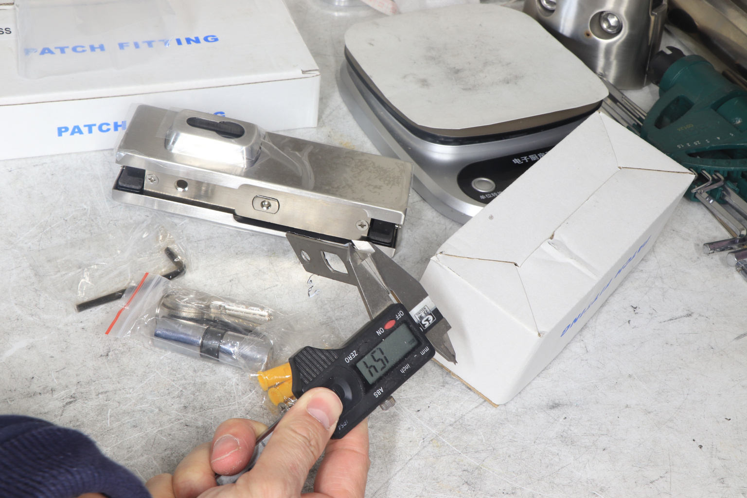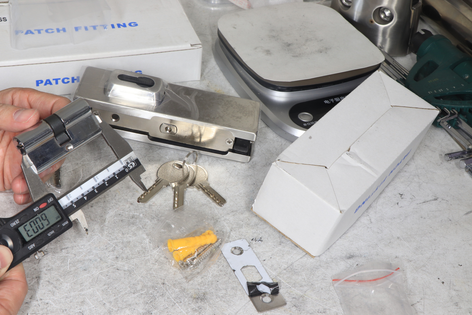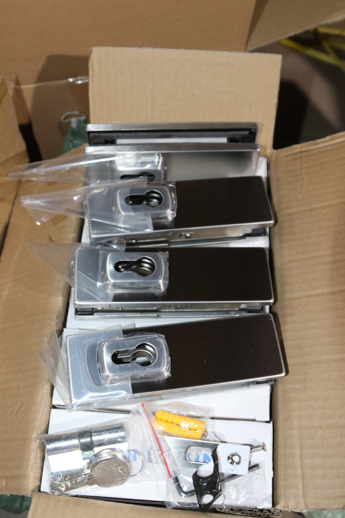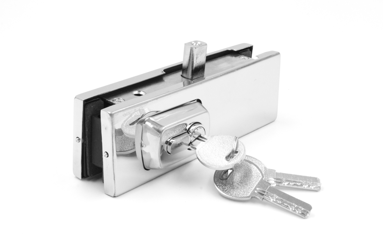Замок для стеклянной двери угловой с круглым ригелем комплект, шлифованный