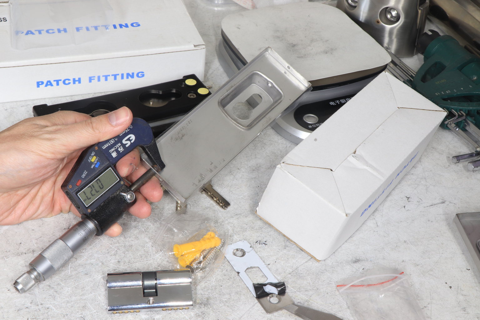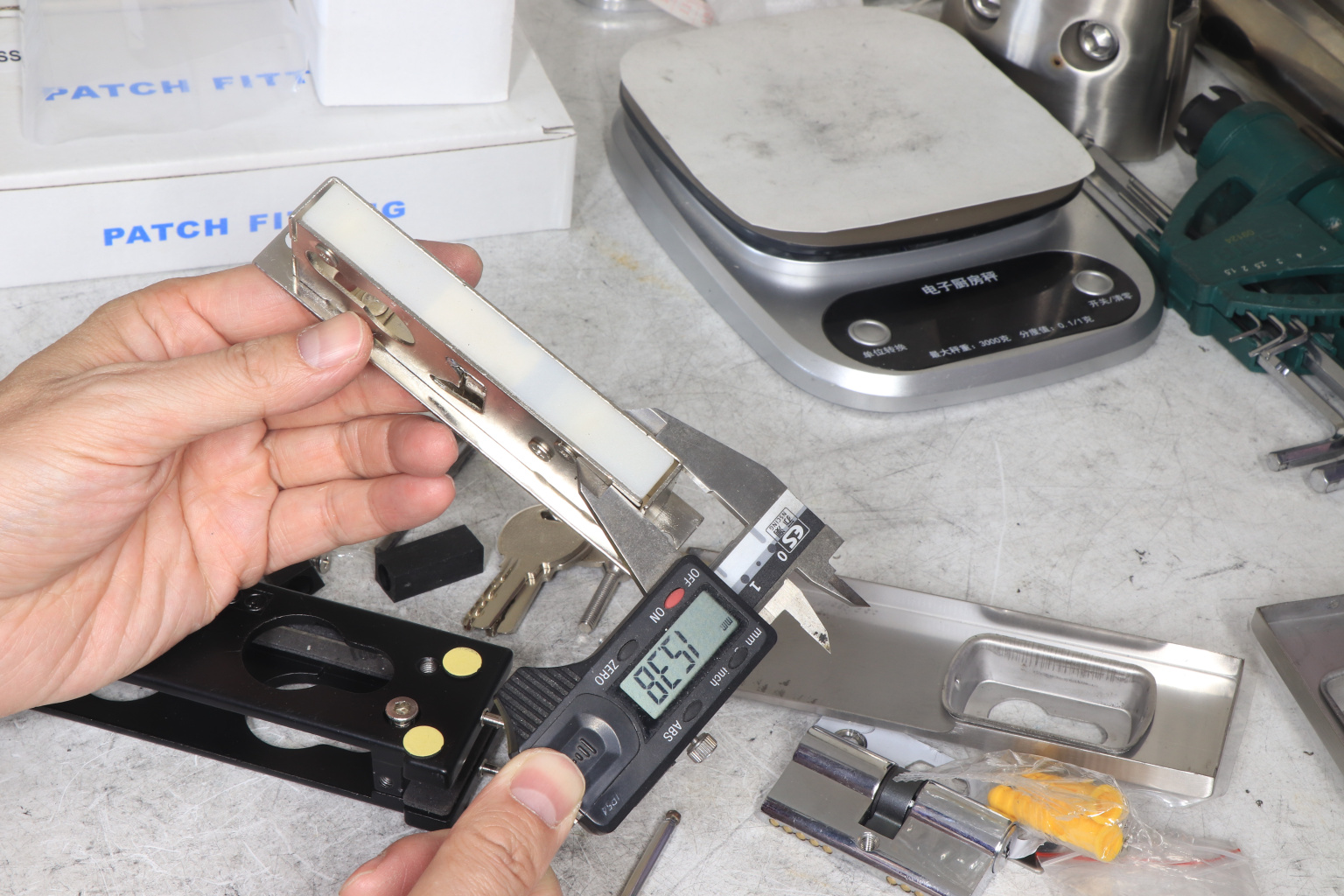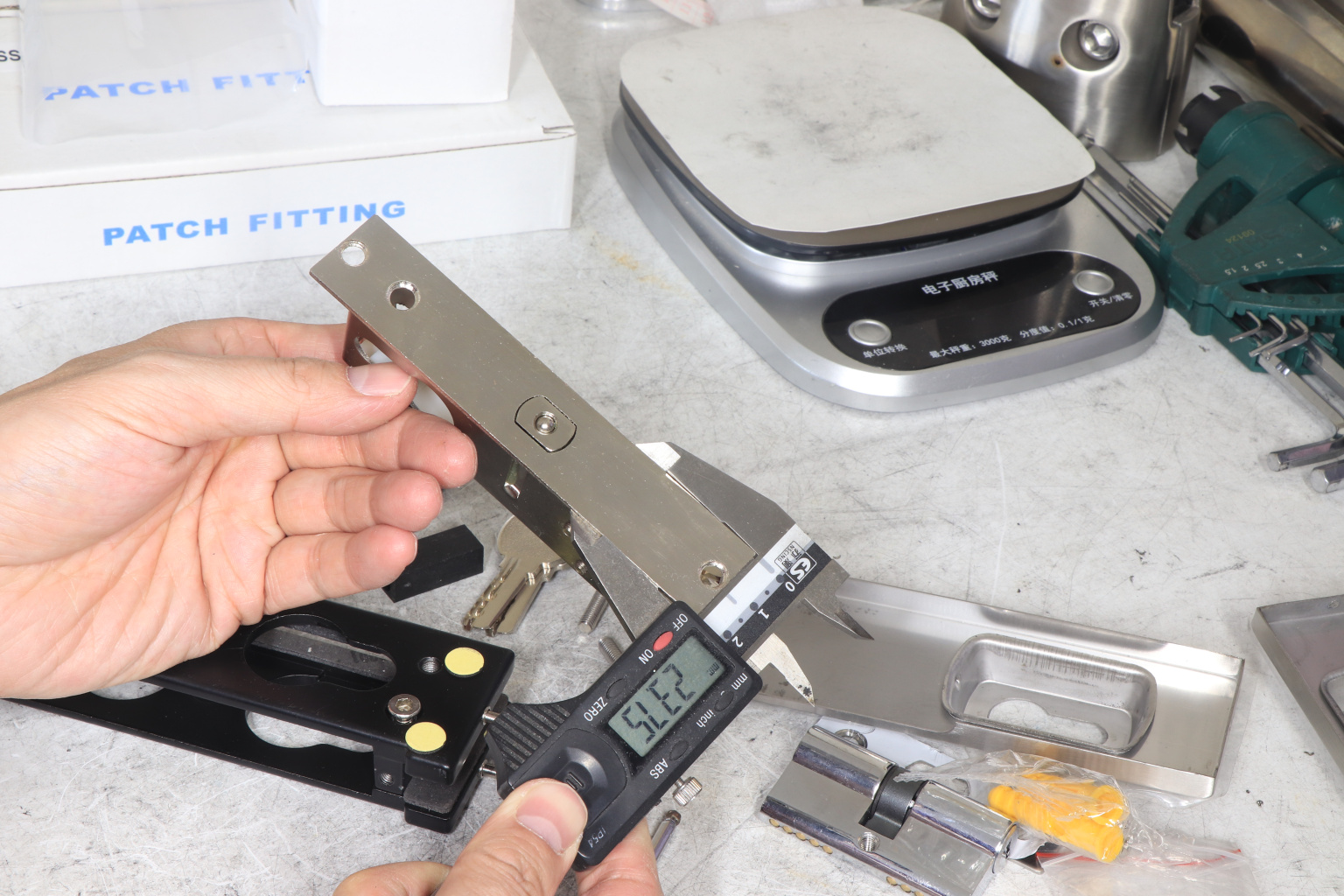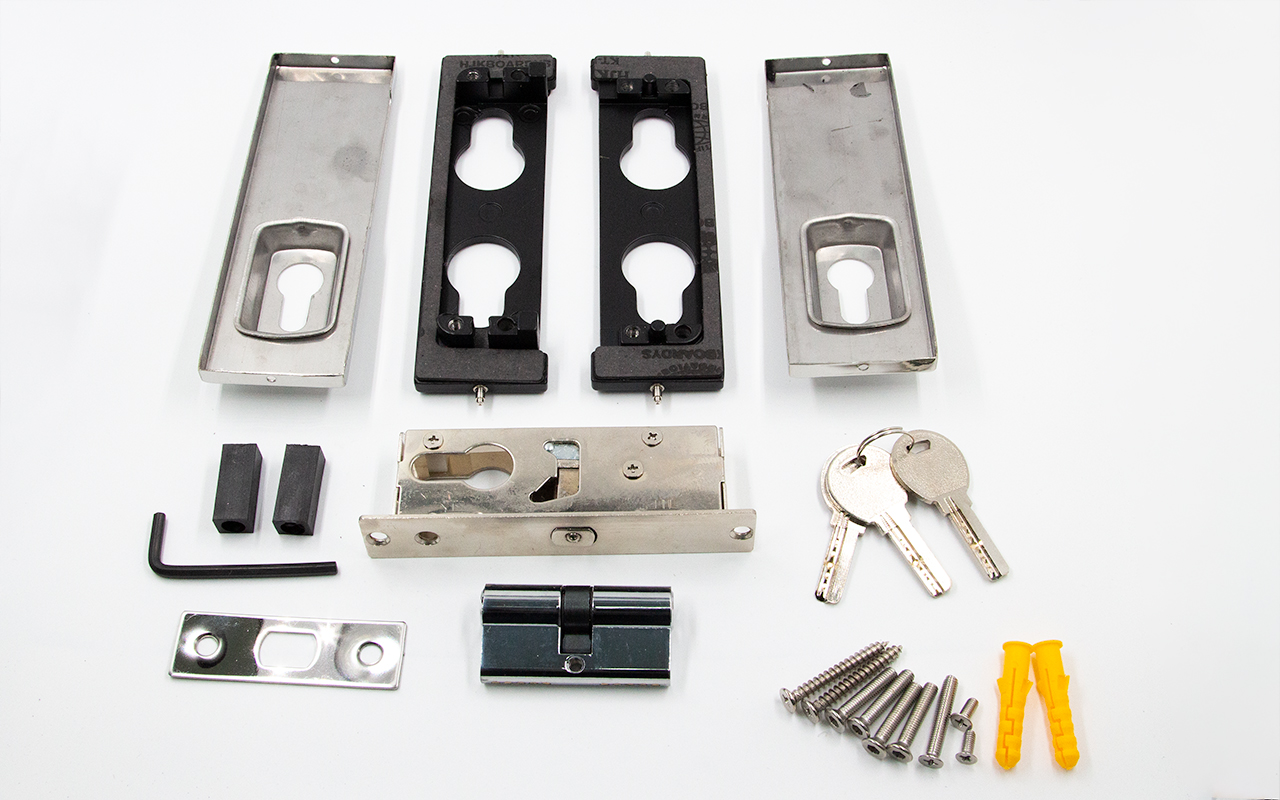 Замок для стеклянной двери угловой с круглым ригелем комплект, шлифованный