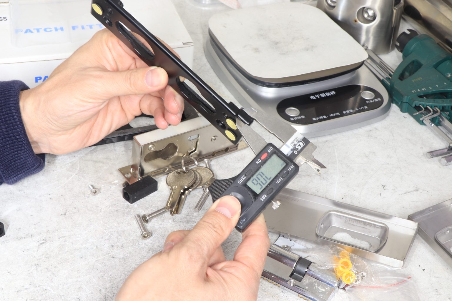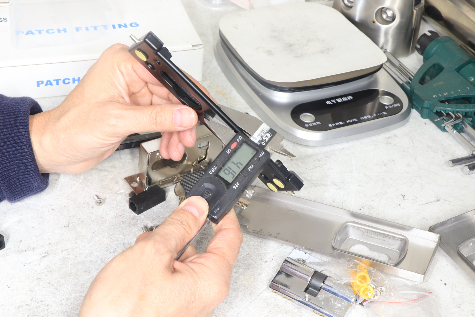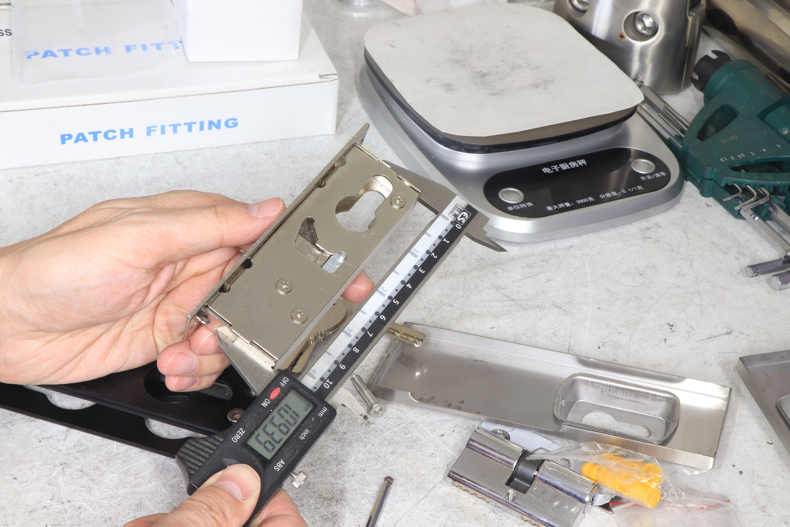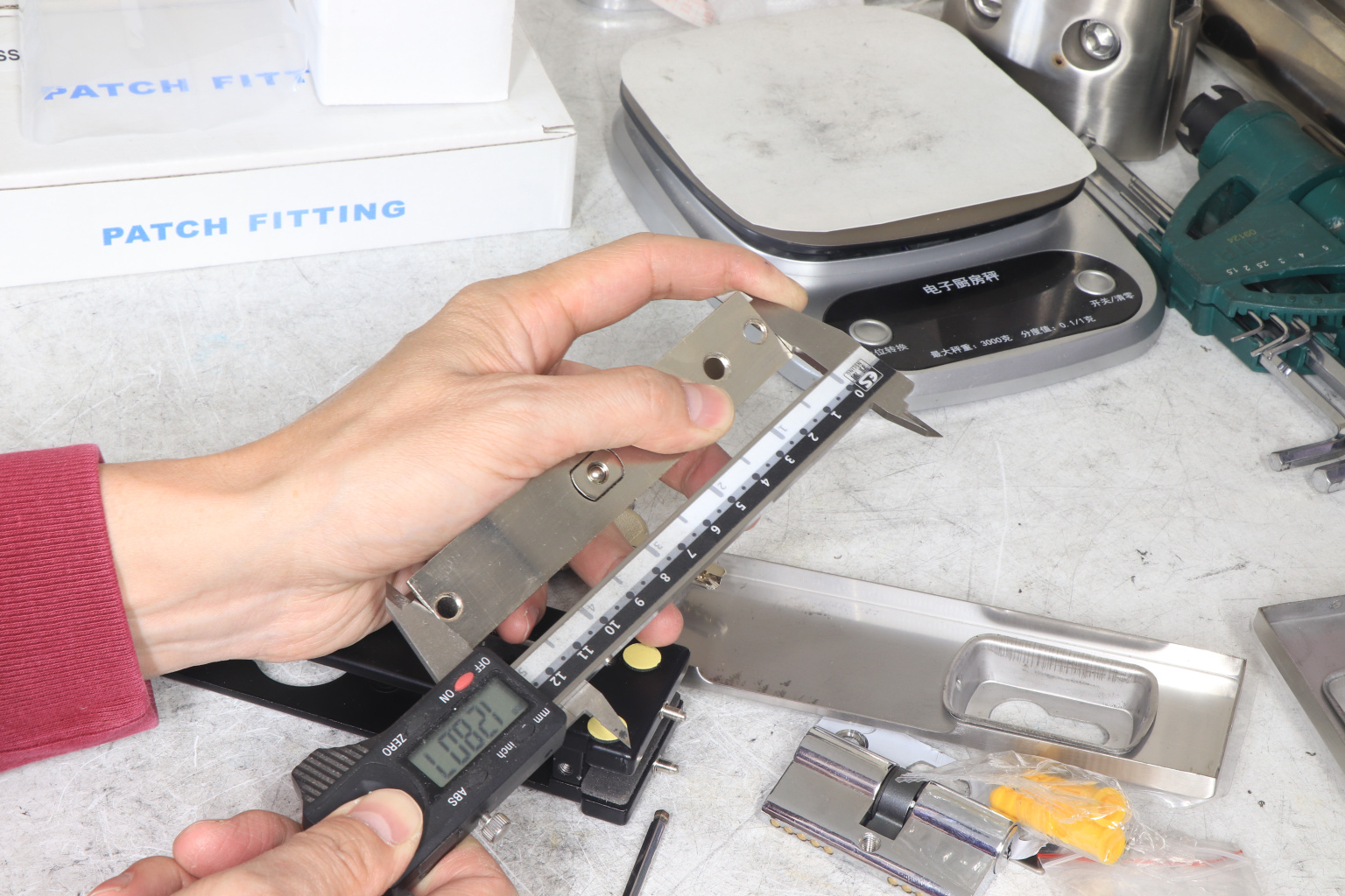Замок для стеклянной двери угловой с круглым ригелем комплект, шлифованный