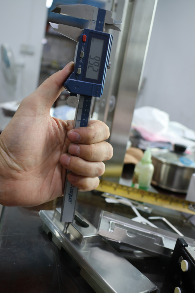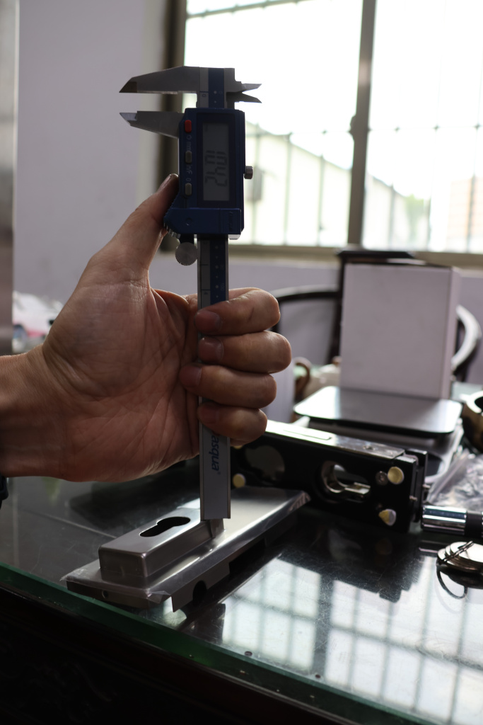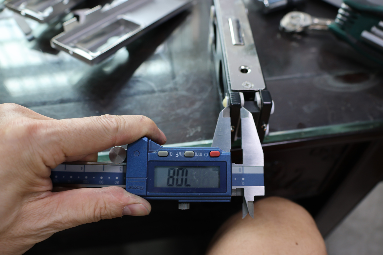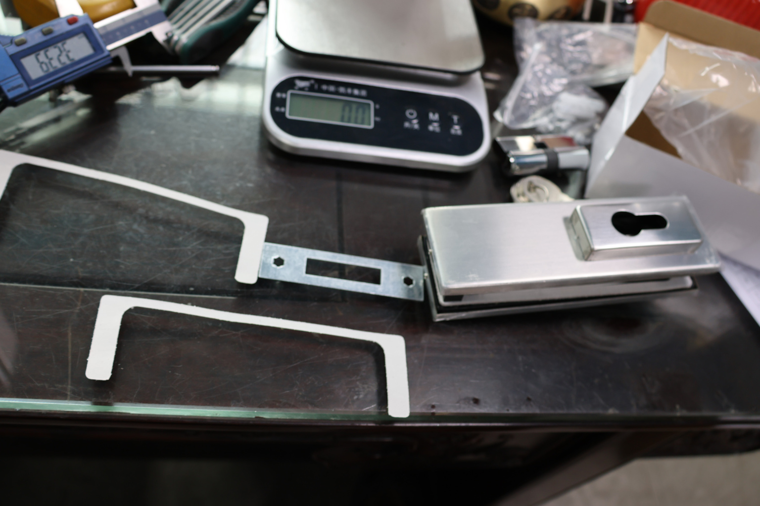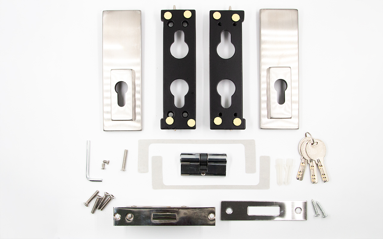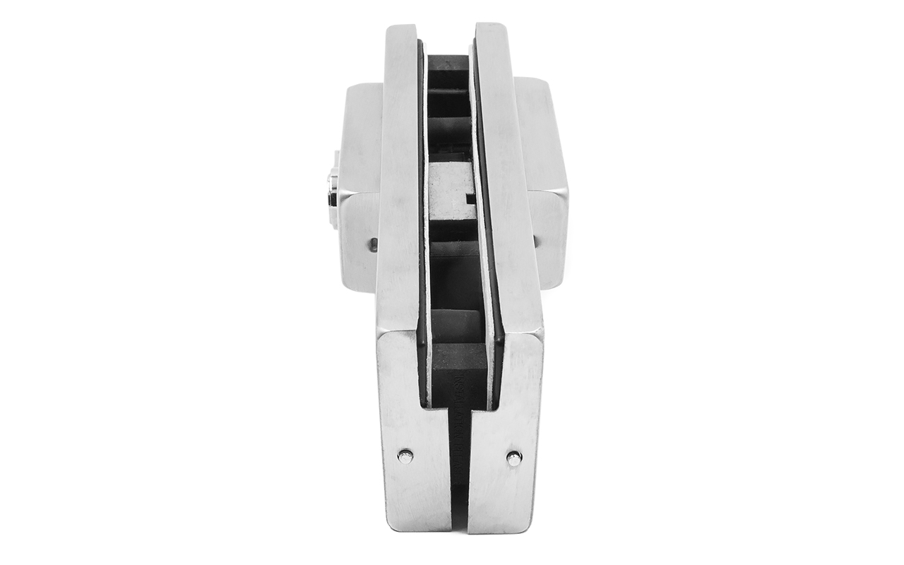 Замок для стеклянной двери центральный с прямоугольным ригелем, шлифованный, вырез 13