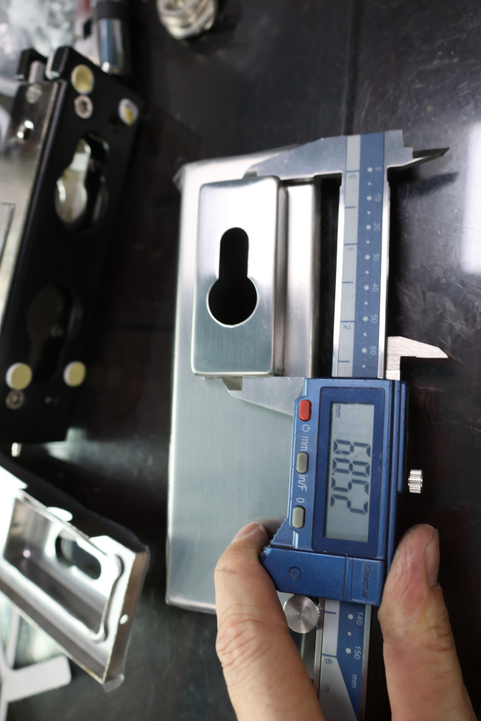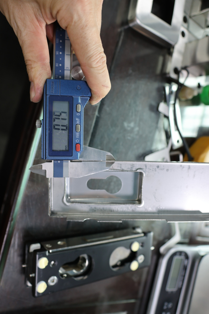 Замок для стеклянной двери центральный с прямоугольным ригелем, шлифованный, вырез 13 t152 SSS