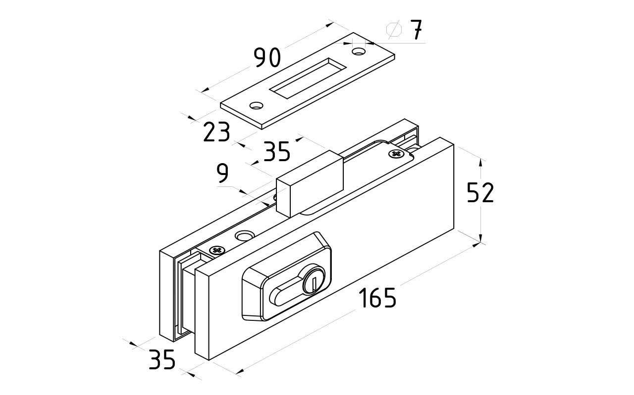 t152 замок центральный без нажимного гарнитура. В комплекте ответная часть на проем.