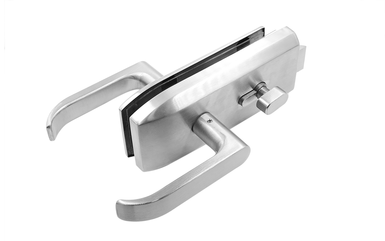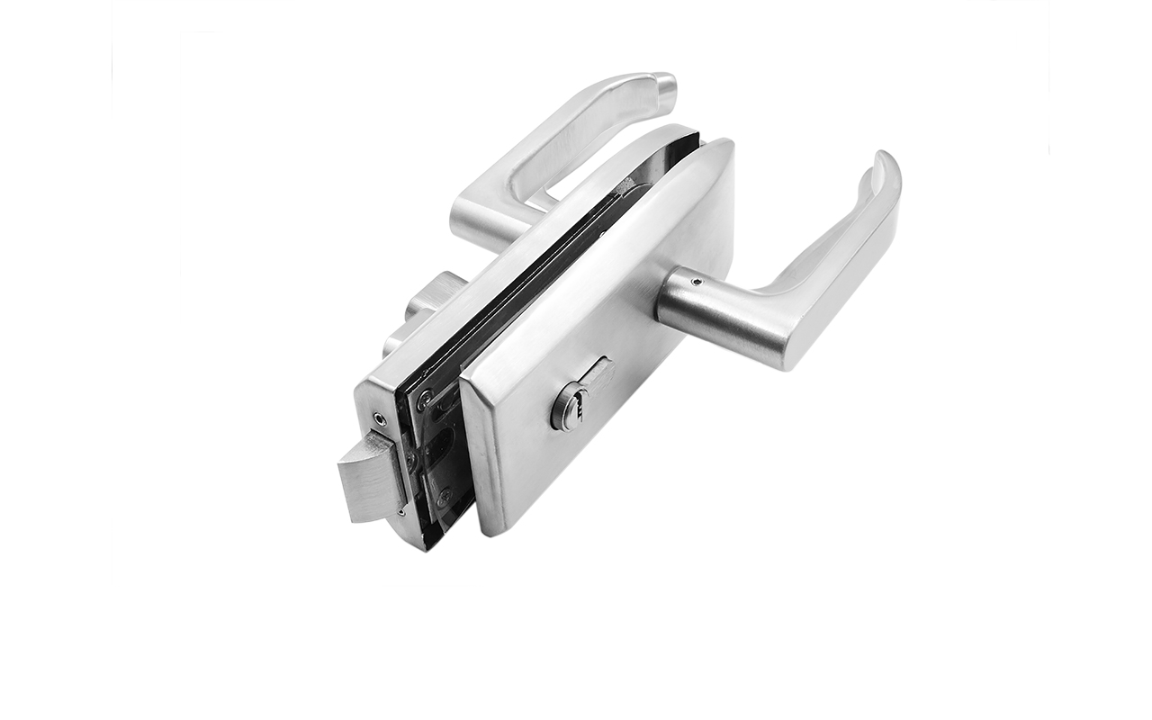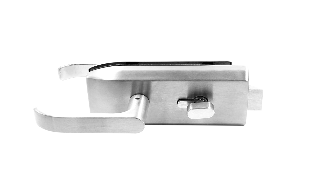 Замок для стеклянной двери с нажимной ручкой и притвором, евроцилиндр односторонний ключ/защелка, с ответной частью на стену, шлифованный t155-2 SSS