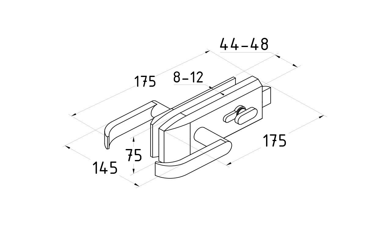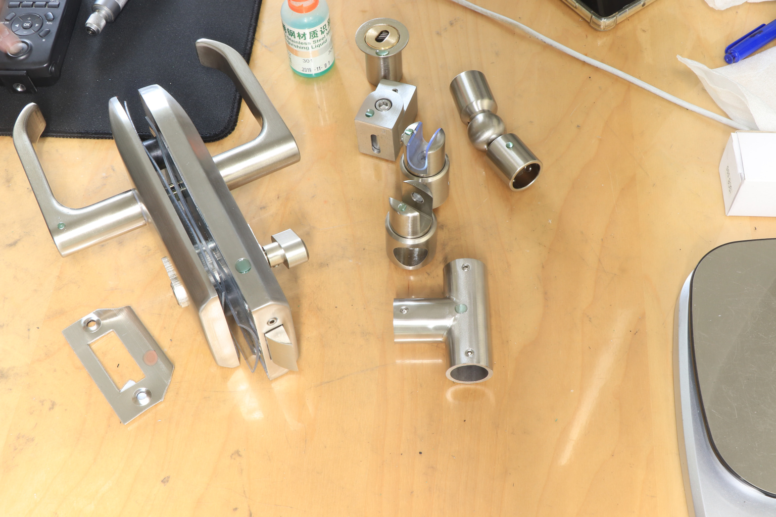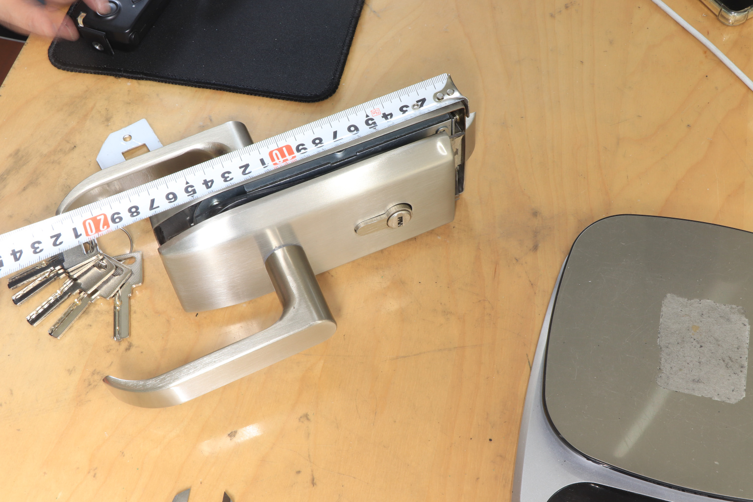 Замок для стеклянной двери с нажимной ручкой и притвором, евроцилиндр односторонний ключ/защелка, с ответной частью на стену, шлифованный t155-2 SSS