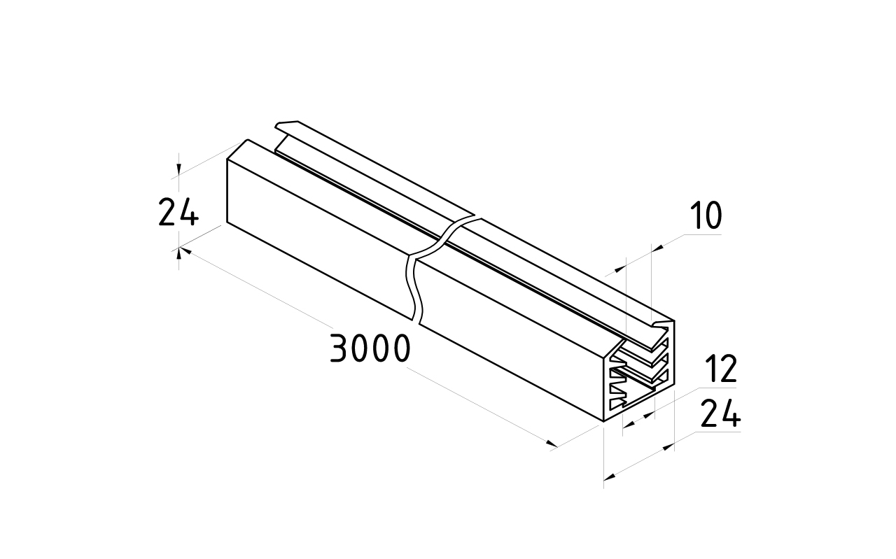 Уплотнитель в поручень с пазом 24х24 под LED ленту на стекло 12мм EPDM (палки 3 м)