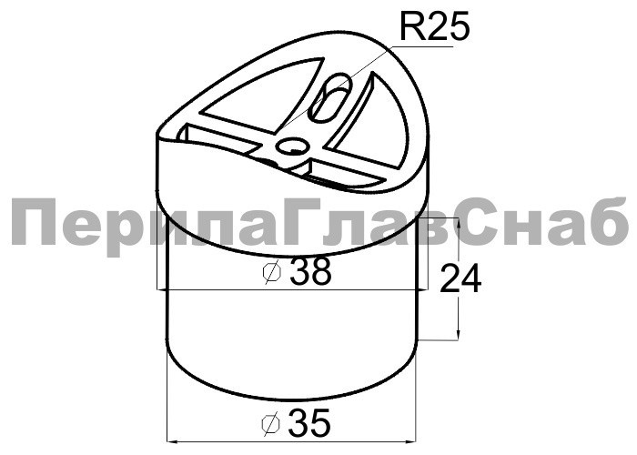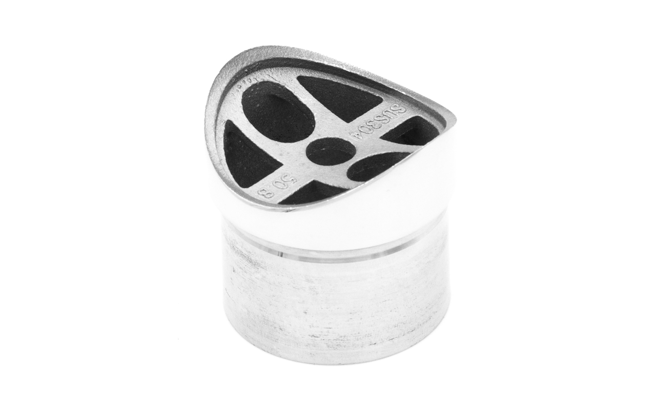 Наконечник седловина прямая 90° на стойку Ø38.1 мм, под поручень Ø50.8 мм, литая, полированная, AISI 304, k044-1
