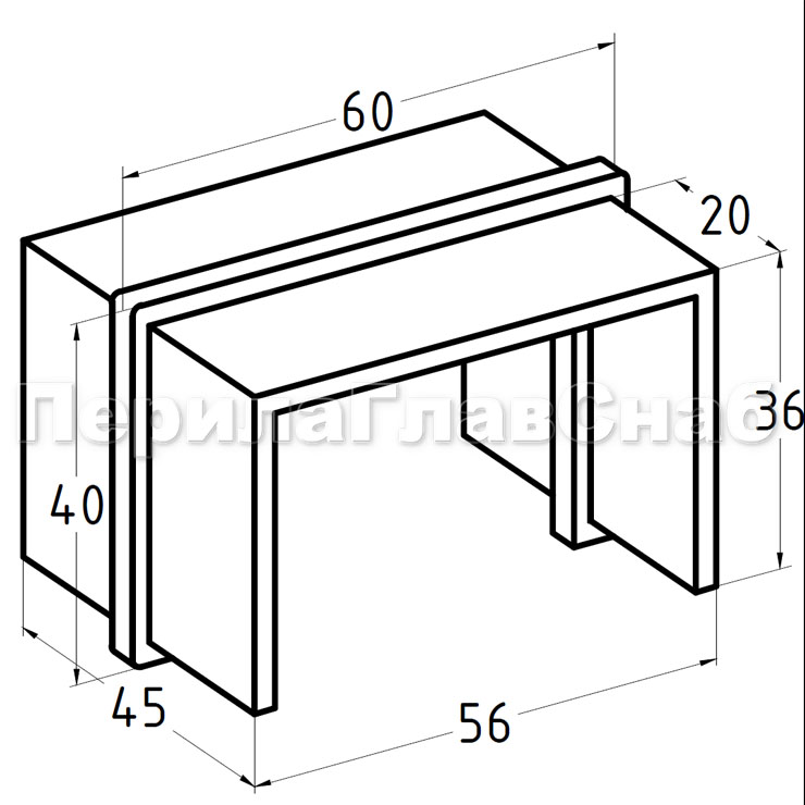 Соединитель для поручня с пазом 40х60 мм, полированный (AISI 304) k541